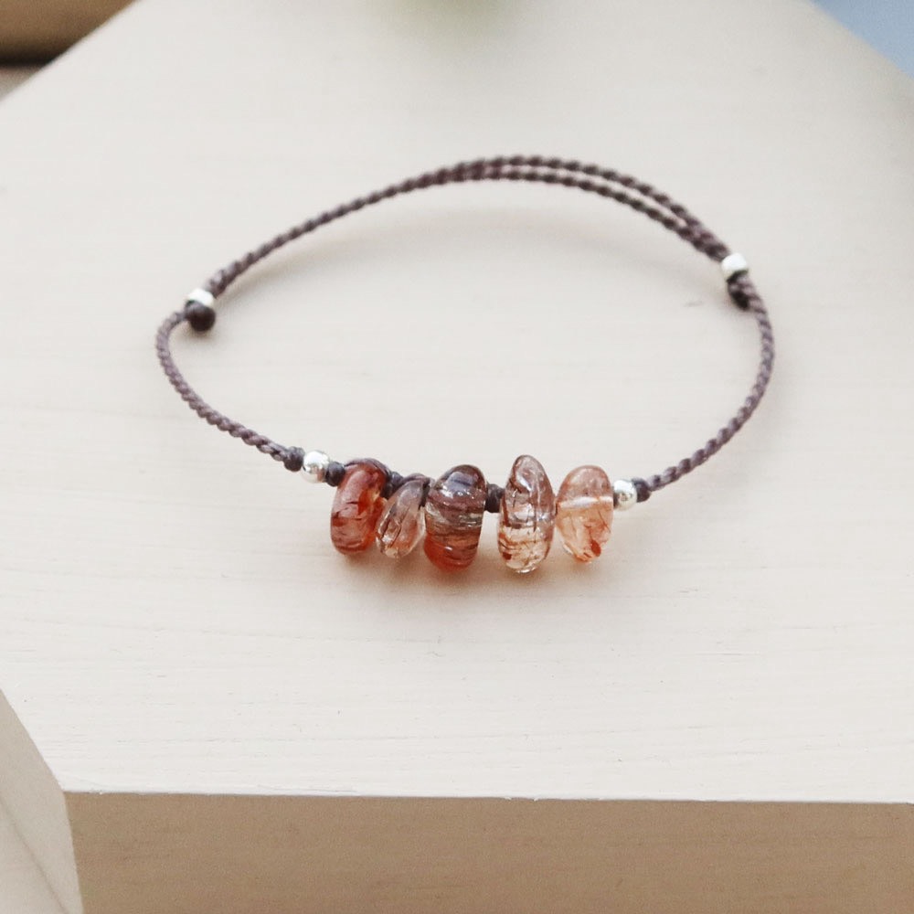 天然礦石不可能都會是相同色澤、結晶,尤其是內含結晶物的水晶(如綠幽靈、草莓晶、鈦晶、黑髮晶等)每一顆都會不一樣喔!【鍊長】最佳配戴手圍 15±2cm(活動圍 最大可至17cm,手圍17cm以上需備註)