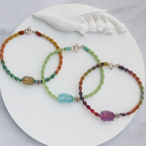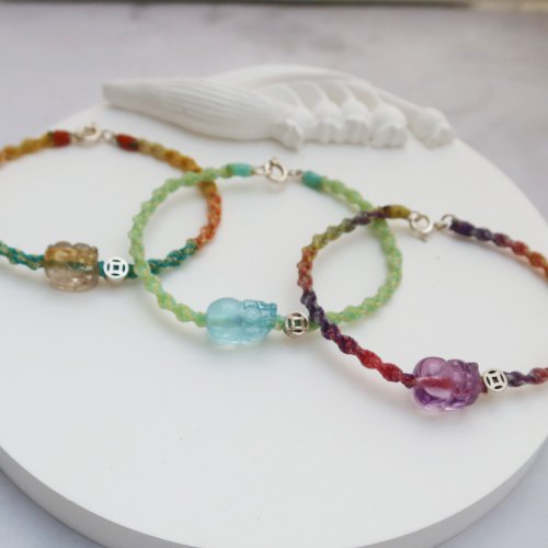 【水晶蠟繩系列】貔貅x招財x咬錢x波浪編 天然水晶蠟繩手鍊 - 手鍊/手環 - 水晶 多色