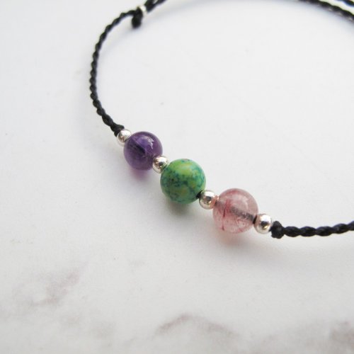 4mm款-拉長石補能量+招貴人、綠絲髮晶招財、草莓晶招桃花+好人緣 5mm款-紫水晶補智慧+招貴人、綠松石避邪顧健康、草莓晶招桃花+好人緣 三個願望一次滿足喔~