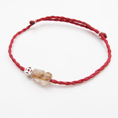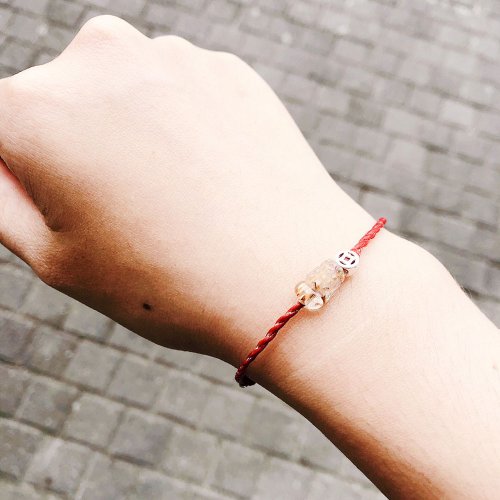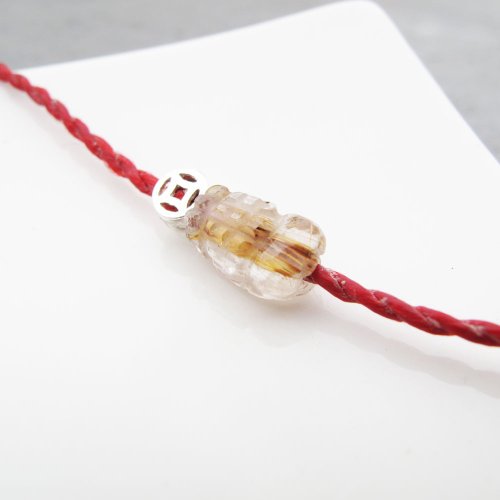 【水晶蠟繩系列】鈦晶貔貅 | 招財 天然水晶 純銀紅線 | 大員囡仔 - 手鍊/手環 - 水晶 金色