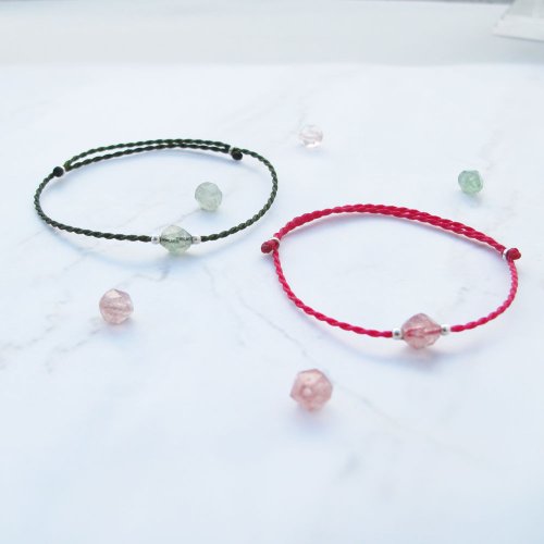 【水晶蠟繩系列】5mm水晶 1 | 正能量極細蠟繩手鍊 | 大員囡仔 - 手鍊/手環 - 半寶石 多色A.草莓晶 切割面 5.5mm ± 0.2mm