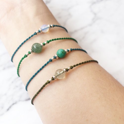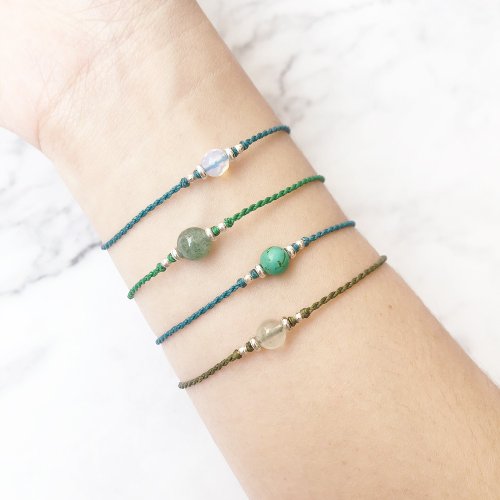 綠色系的水晶清新活潑,給你滿滿的綠色能量! 小巧細緻的細手繩適合天天配戴,可單戴也可混搭