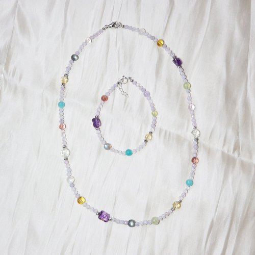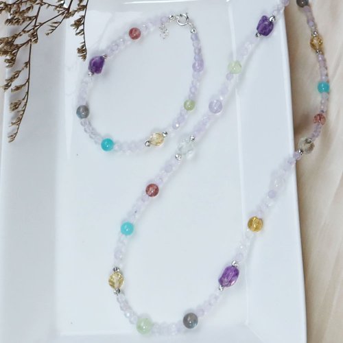 【水晶項鍊】 桃紅柳綠x多寶水晶x紫玉晶x綠水晶 時尚開運項鍊 - 項鍊 - 水晶 多色