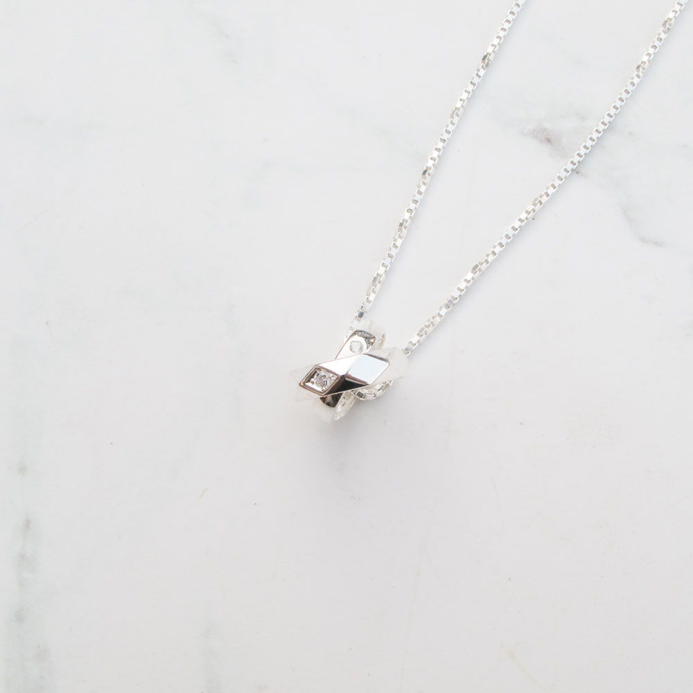 【純銀情侶對鍊】美麗的相遇 | 菱格×雙圈×鋯石對鍊 | 大員囡仔