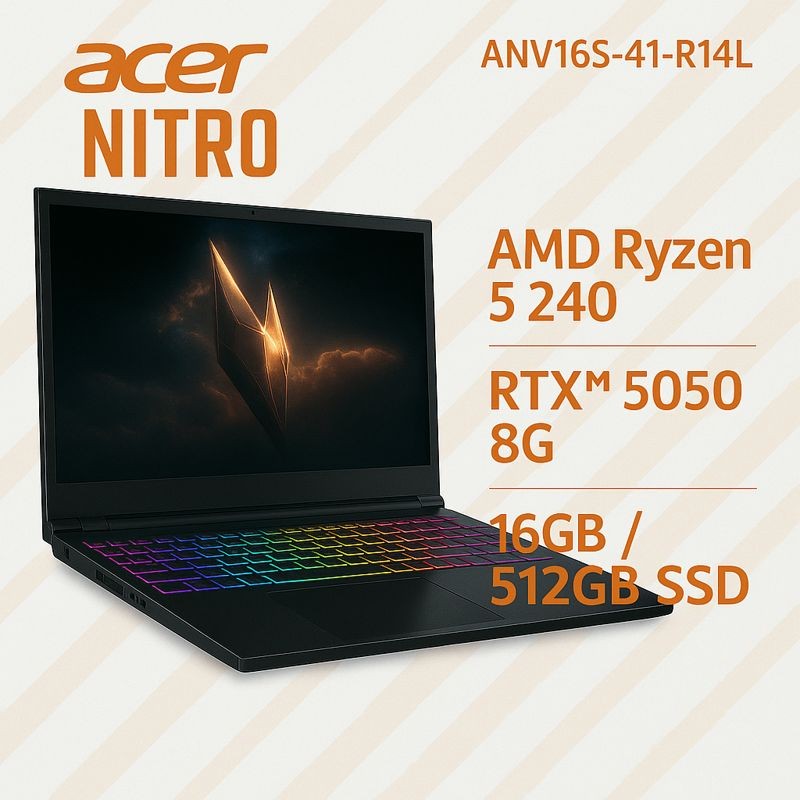 ACER 宏碁Nitro V 16吋 電競筆電黑(R5-240/16GB/512GB/RTX5050-8G/W11/ANV16S-41-R14L)🎈送保護套/滑鼠墊/鍵盤膜🎈