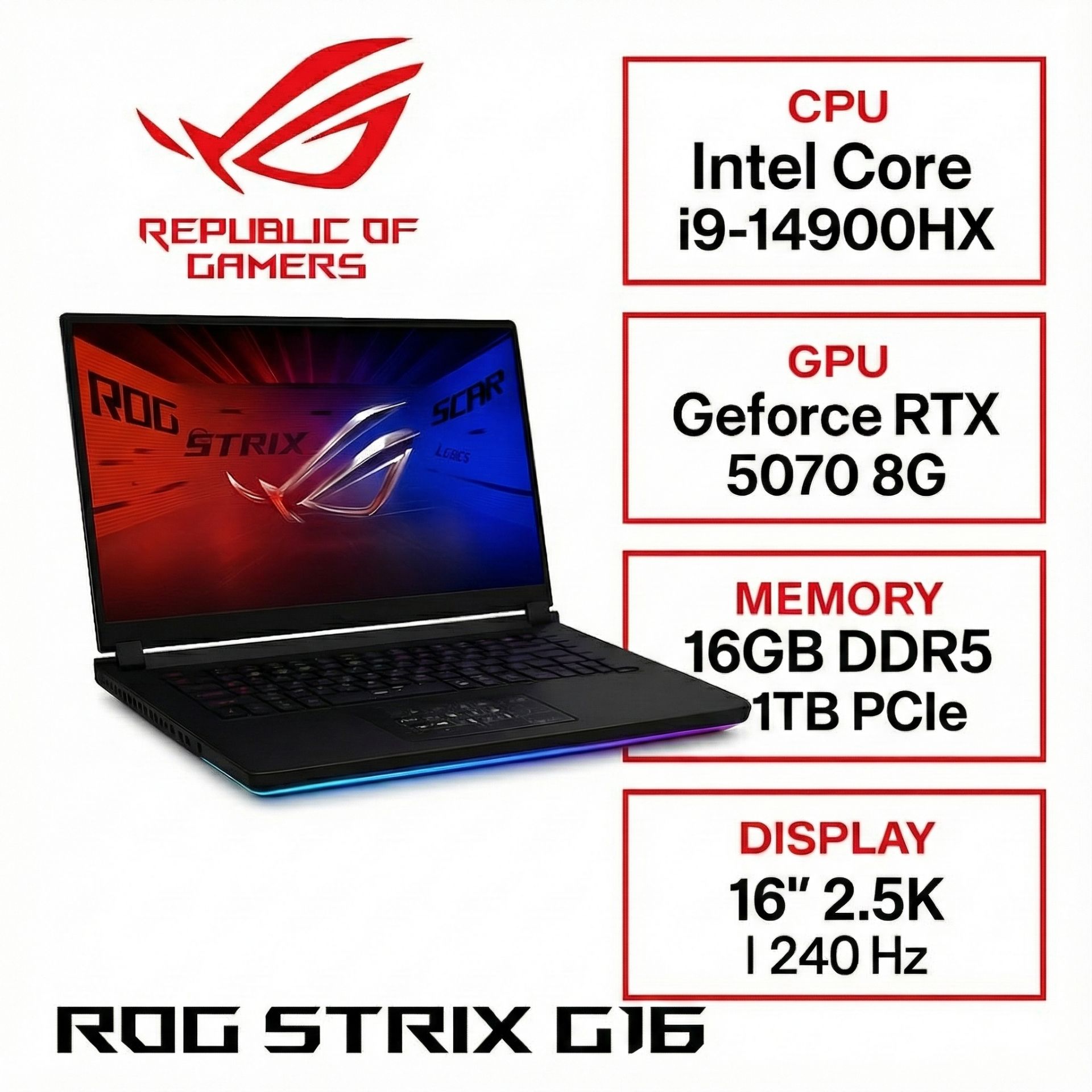 ASUS ROG Strix G16 G615JPR-0051G14900HX-NBL 電光綠 華碩旗艦滿血版電競筆電/i9-14900HX/RTX5070 8G/16GB DDR5/1TB PCIe/16吋 16:10 2.5K 240Hz/W11🎈送保護套/滑鼠墊/鍵盤膜🎈