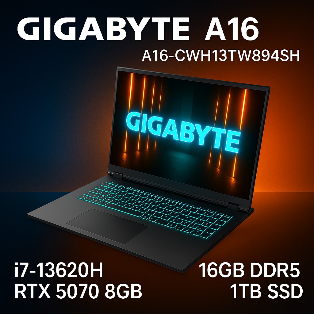 GIGABYTE 技嘉GAMING A16 CWHI3TW894SH 16吋電競筆電(i7-13620H/RTX5070 8G/16G/1TB/Win11/WUXGA)🎈送保護套/滑鼠墊/鍵盤膜🎈