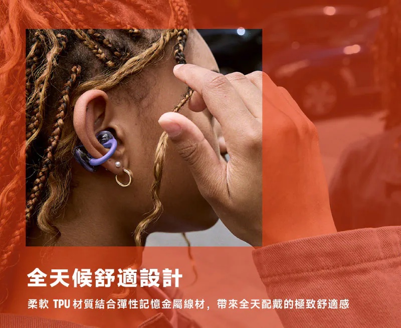 • 柔軟 TPU 結合彈性記憶金屬線材,全天配戴的極致舒適感。