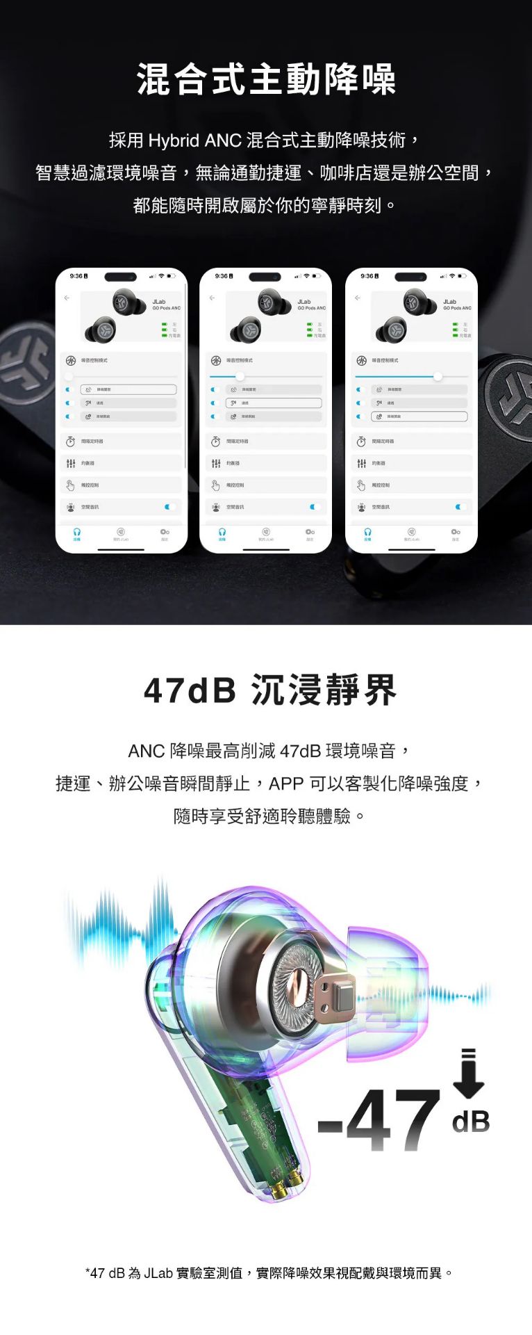 • 47dB降噪|最高可削減 -47 dB 外界噪音