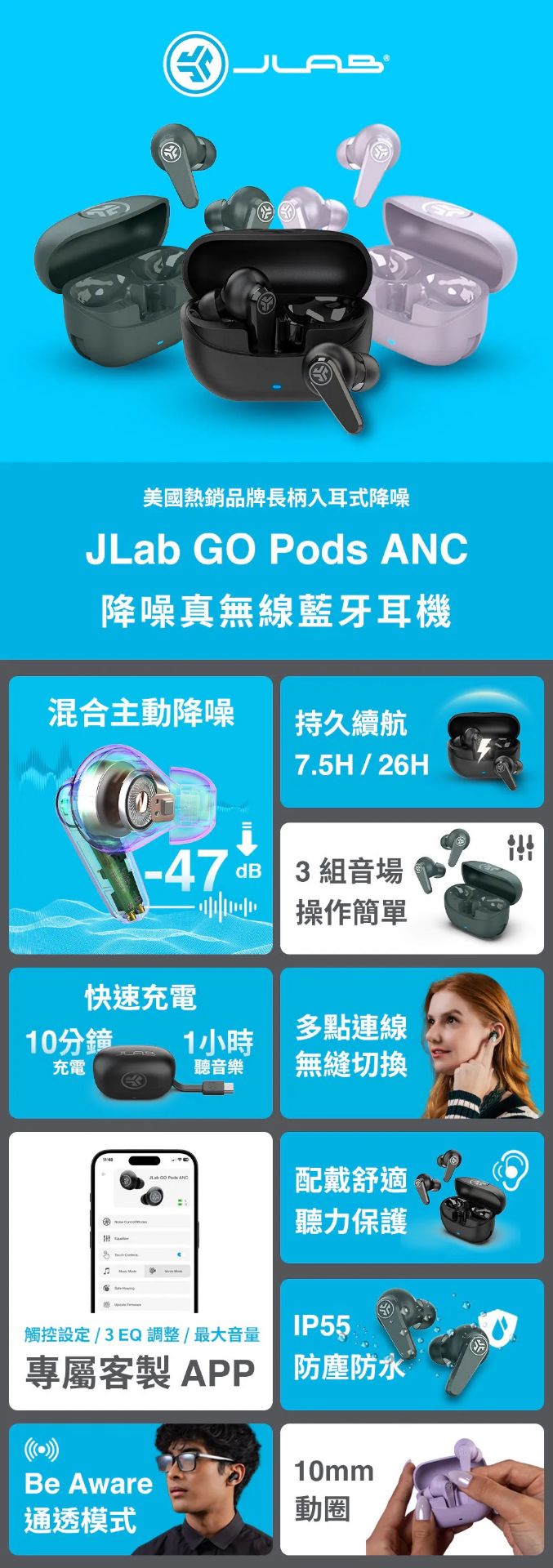 【JLab】GO Pods ANC 降噪真無線藍牙耳機