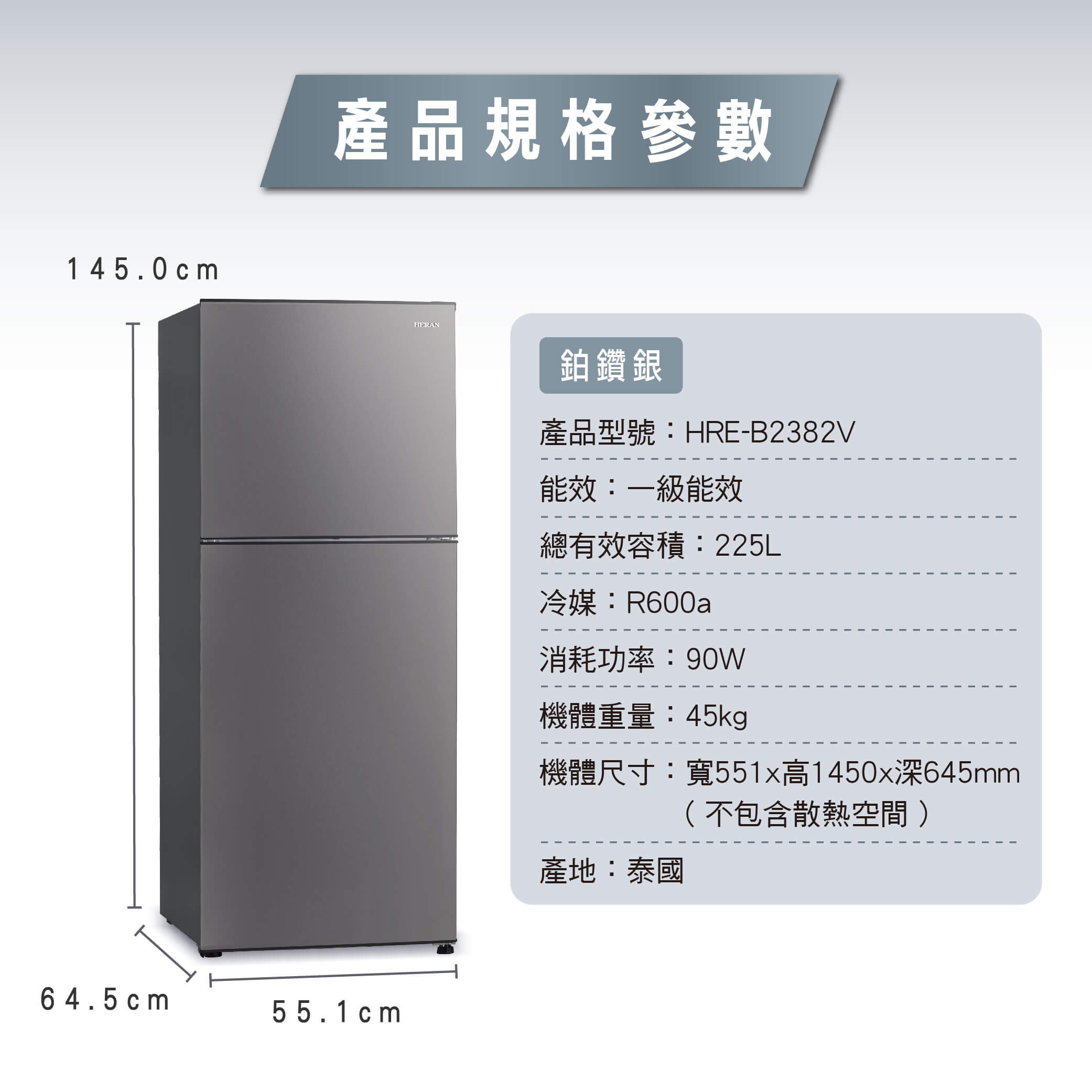 HERAN 禾聯 225公升雙門變頻冰箱 HRE-B2382V