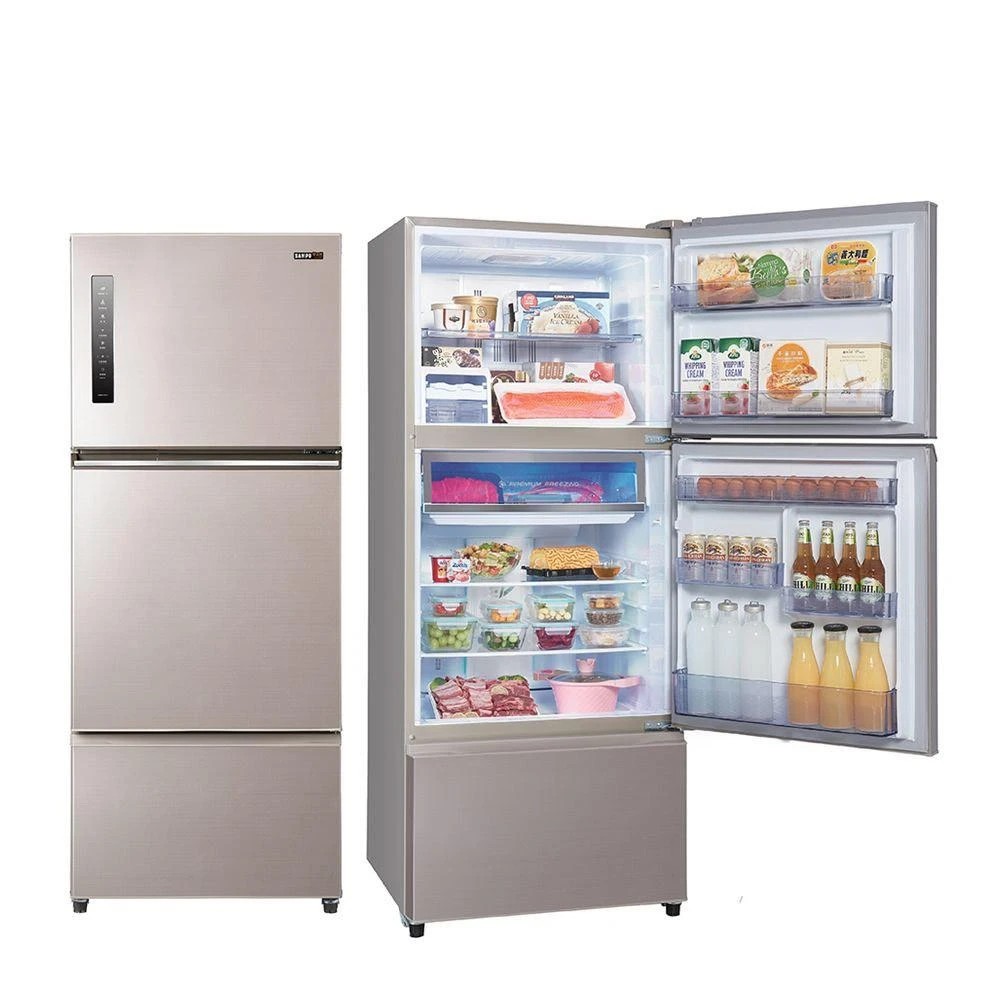 SAMPO能源效率第1級聲寶星美滿冰箱極光 微凍鮮科技抗菌低溫鎖鮮星美滿極光鈦旗艦系列530L 炫麥金SR-C53DV(Y7 變頻三門EF值25.1品)