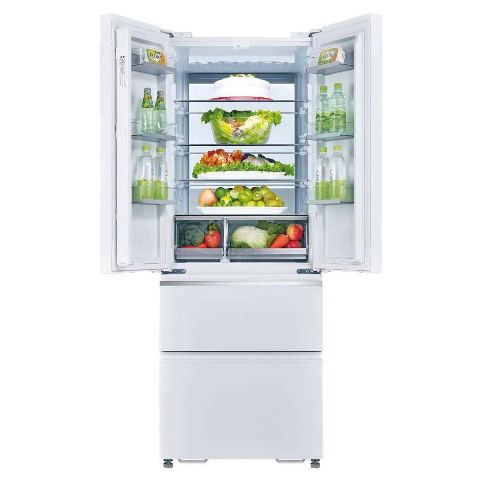 日式收納設計食材分層存放,整齊方便好管理 上冷藏下冷凍體貼設計減少彎腰次數,更符合大眾使用習慣。 冷藏室對開設計無須顧慮開門方向,更符合現代居家空間需求。 4門設計依需求開啟冷藏及冷凍室,減少耗能更省電。