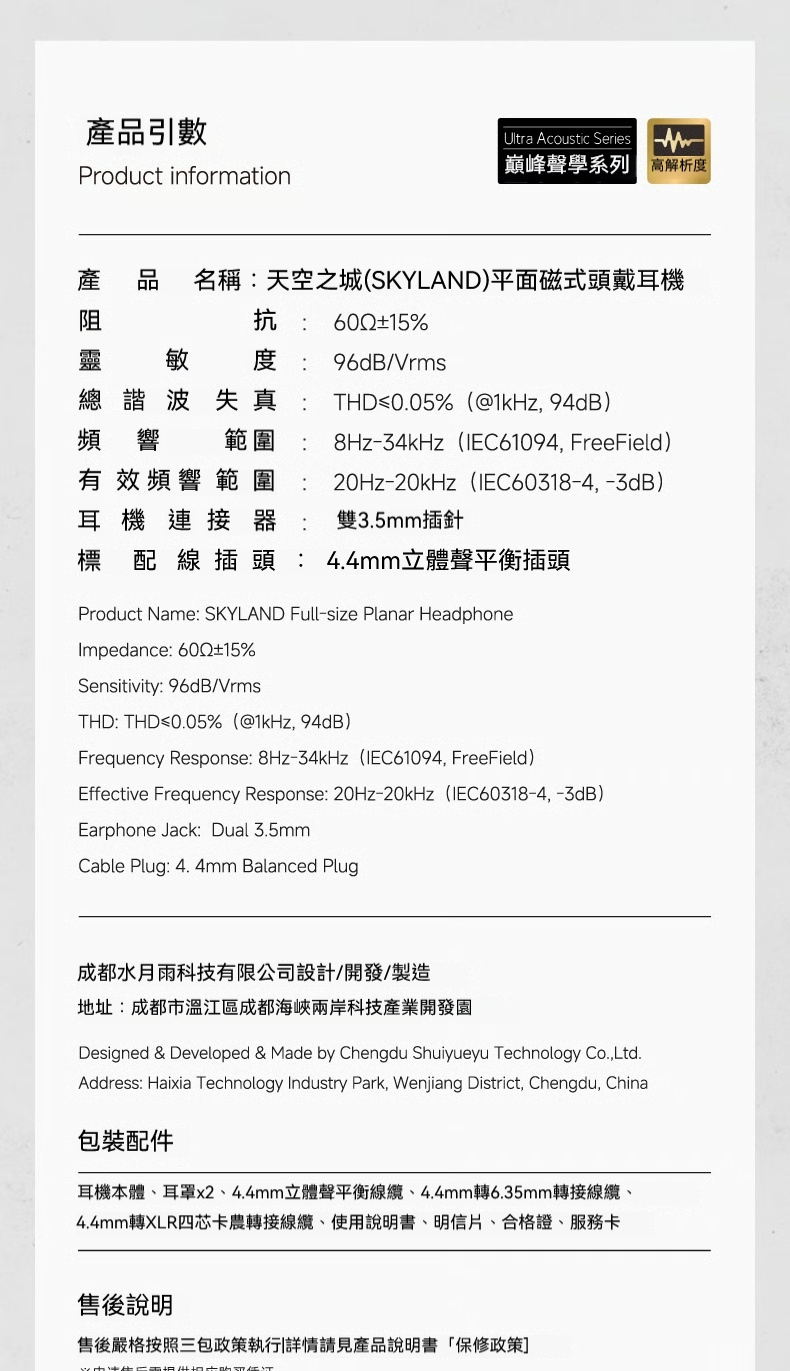 產品名稱:天空之城(SKYLAND) 平面磁式頭戴耳機