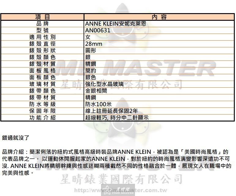 3.Anne Klein-安妮克萊恩手錶-台灣獨家代理商