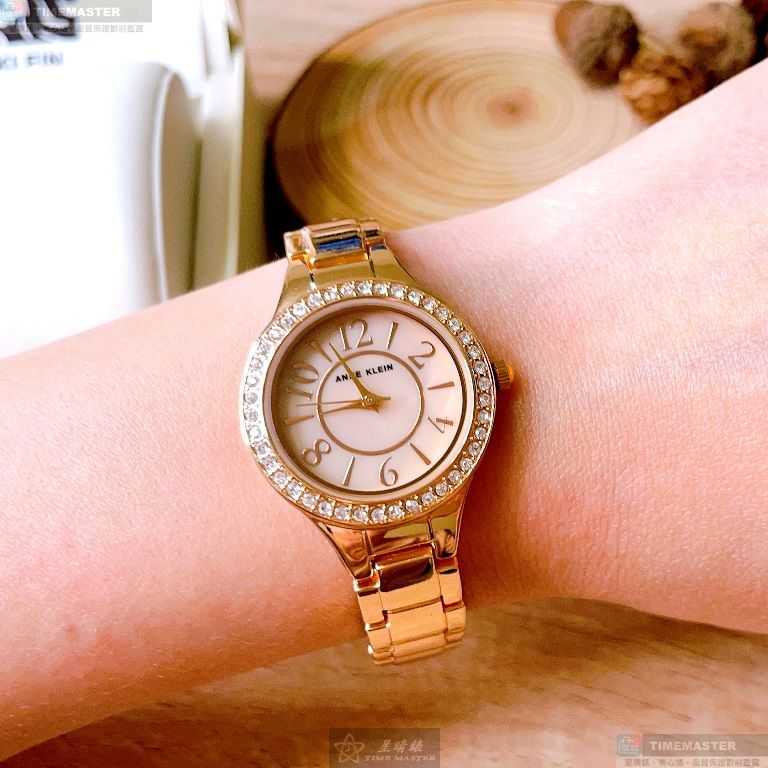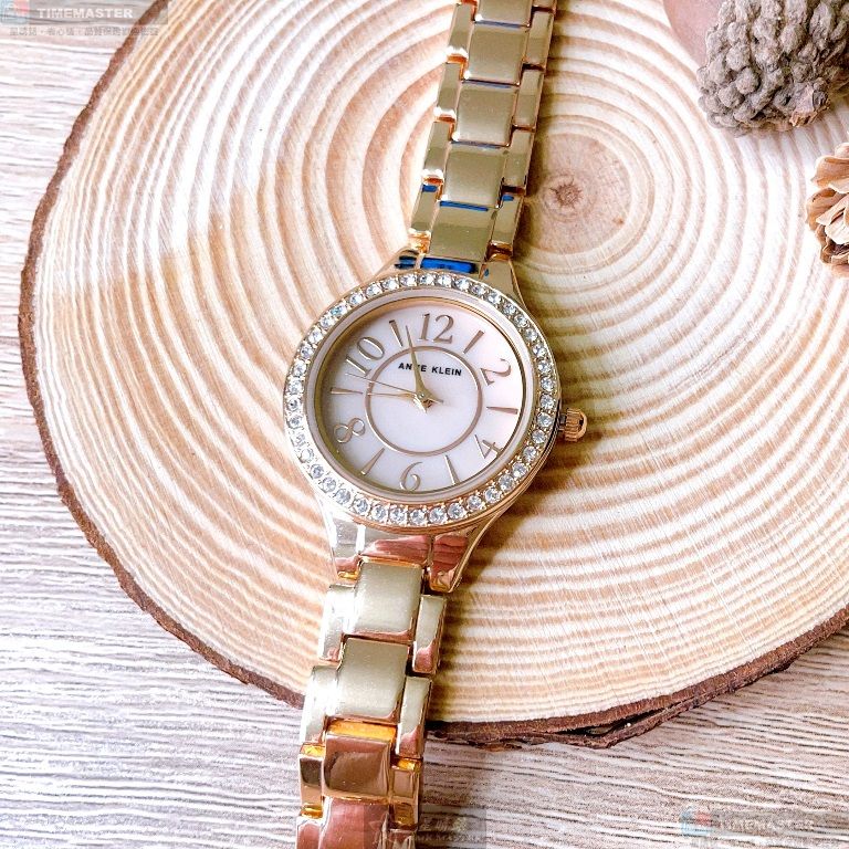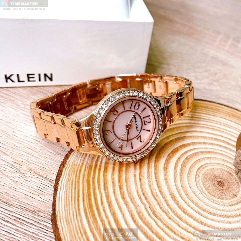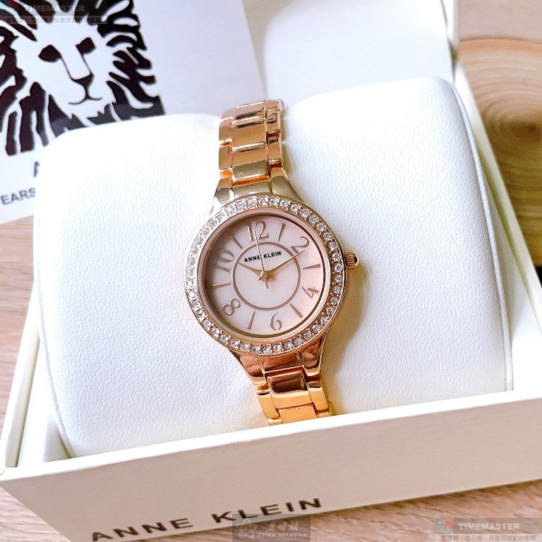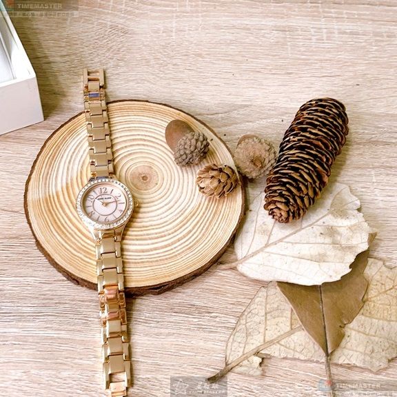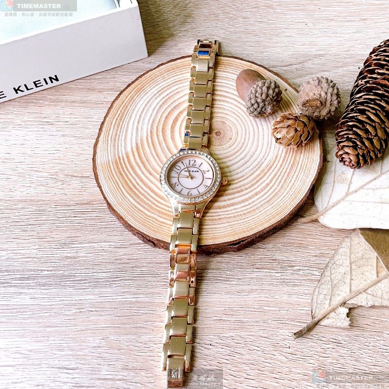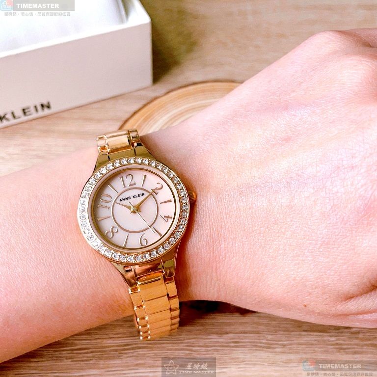 AnneKlein手錶,編號AN00216,28mm玫瑰金圓形精鋼錶殼,玫瑰金色簡約, 貝母錶面,玫瑰金色精鋼錶帶款