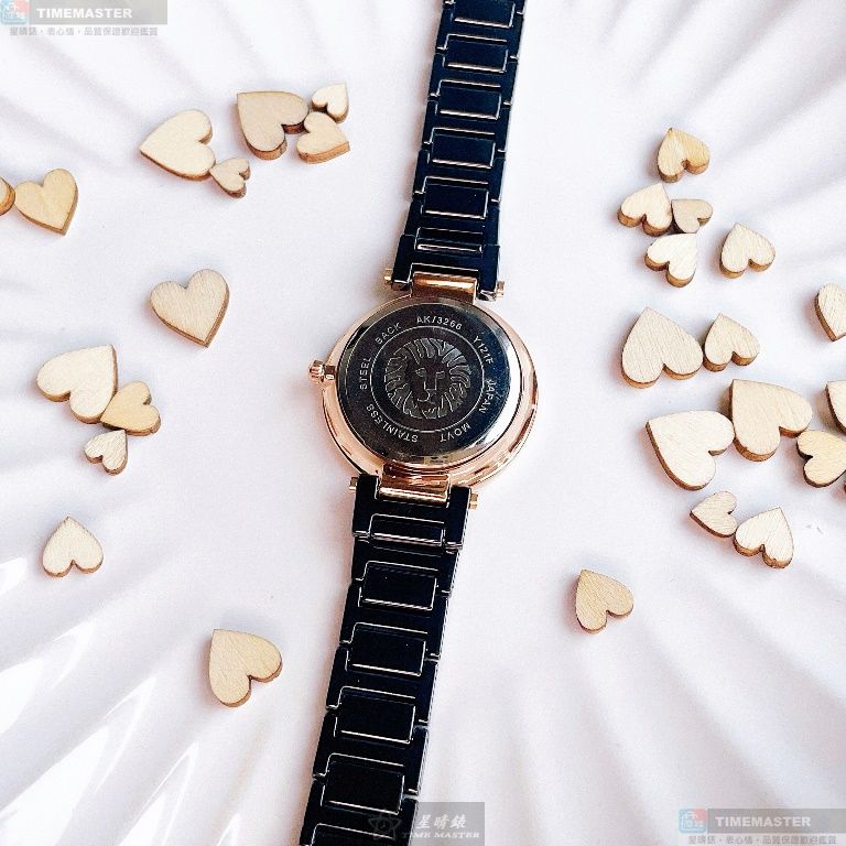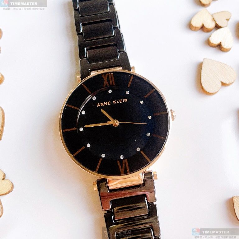 AnneKlein手錶,編號AN00344,32mm玫瑰金, 金色錶殼,深黑色錶帶款