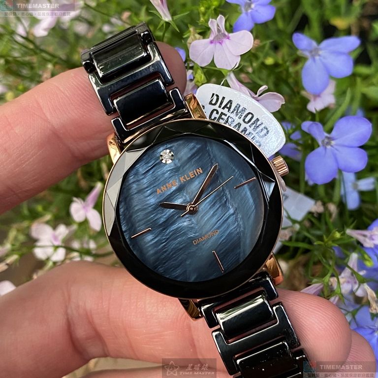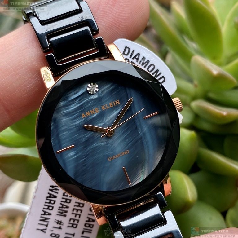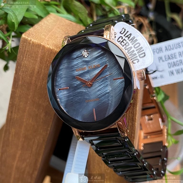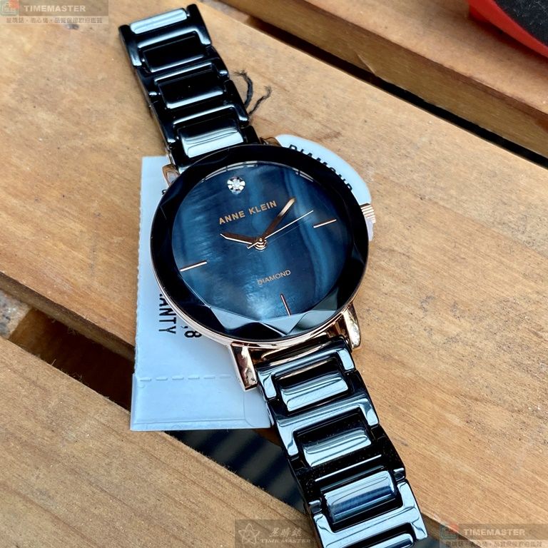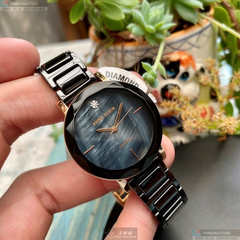AnneKlein手錶,編號AN00391,30mm黑圓形精鋼錶殼,黑色, 貝母簡約, 貝母錶面,深黑色陶瓷錶帶款