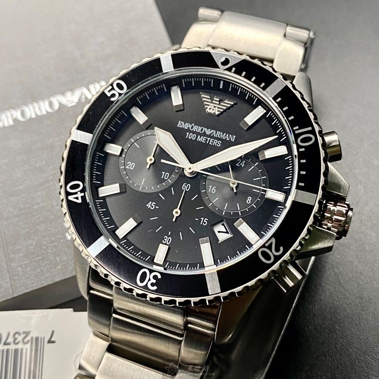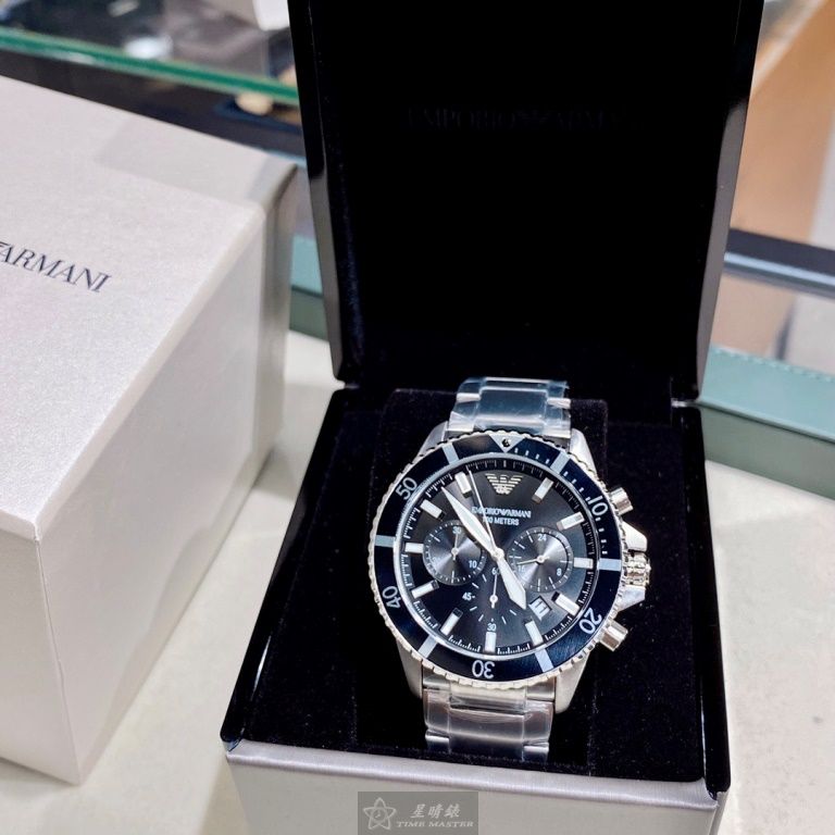 ARMANI手錶,編號AR00014,42mm黑錶殼,銀色錶帶款