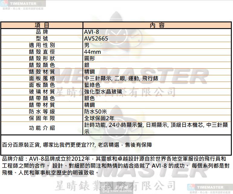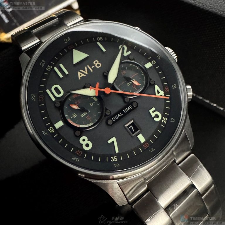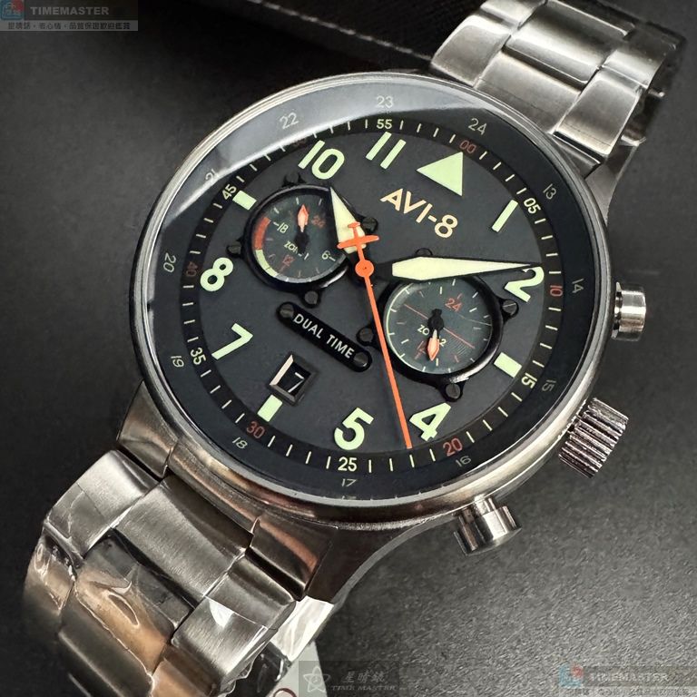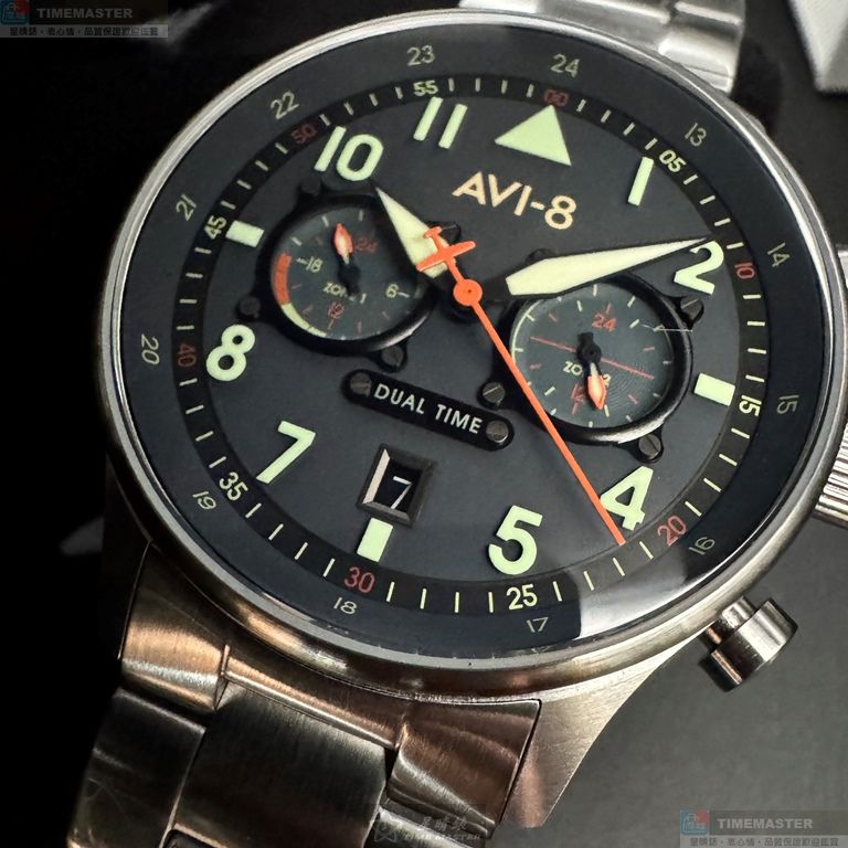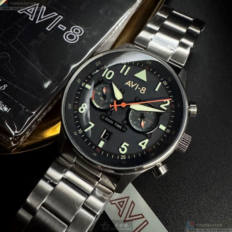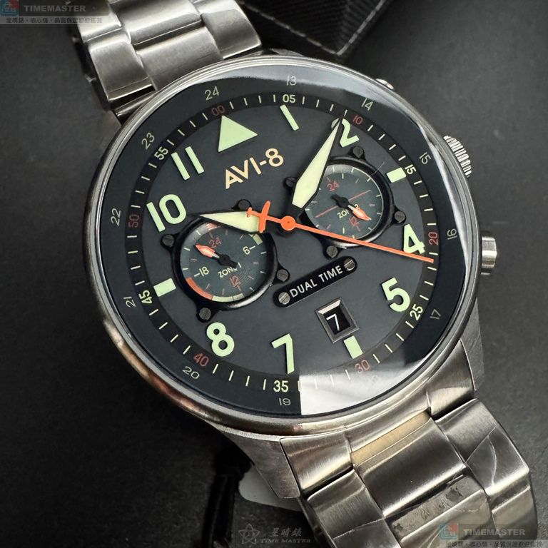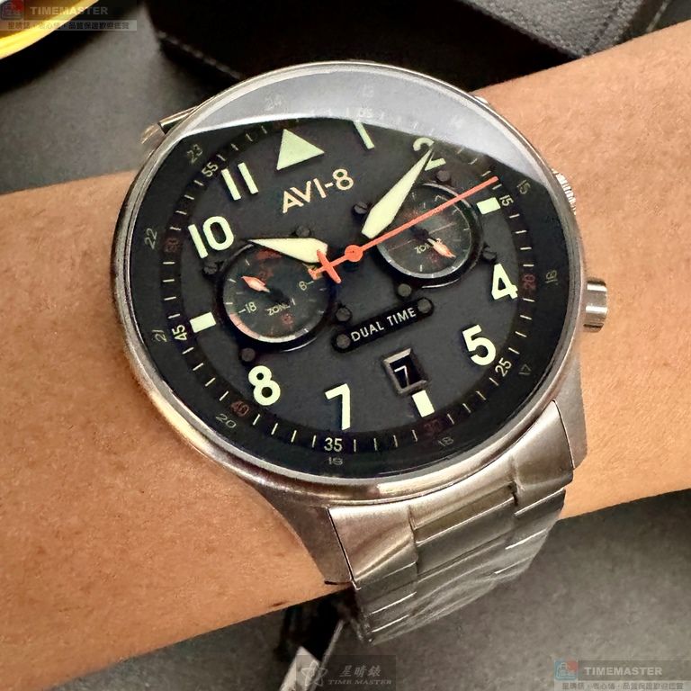 AVI-8手錶,編號AV52665,44mm銀錶殼,銀色錶帶款
