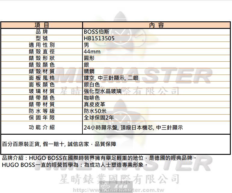 星晴錶業推出的BOSS伯斯HB1513505男錶,以44mm精鋼圓形錶殼承載細膩的鏤空面板設計,每一次抬腕都呈現精工質感。 自動機械機芯搭配頂級日本機芯技術,雖非最頂級,但穩定可靠,讓每日佩戴更安心。 錶盤採銀白色中三針與二眼設計,細緻呈現24小時顯示盤功能,實用而不浮誇。 強化型水晶玻璃保護面板,耐磨防刮,日常使用中展現耐用特性。 咖啡色真皮錶帶手感柔軟,搭配精鋼錶殼,彰顯低調成熟氣息。 防水50米設計,讓生活中的小雨或日常清潔不必擔心損壞,兼具實用性。 全球2年保固承諾,讓購買者感受星晴錶業肩負的責任與信心。 對於追求品質與細節的人而言,HB1513505雖非最便宜,但每一處都精雕細琢。 配戴這款手錶,是日常品味與務實態度的展現,也承載著負責任的使命感。 選擇BOSS伯斯HB1513505,就是選擇一支雖非最頂尖但可靠、耐用且具質感的男錶。
