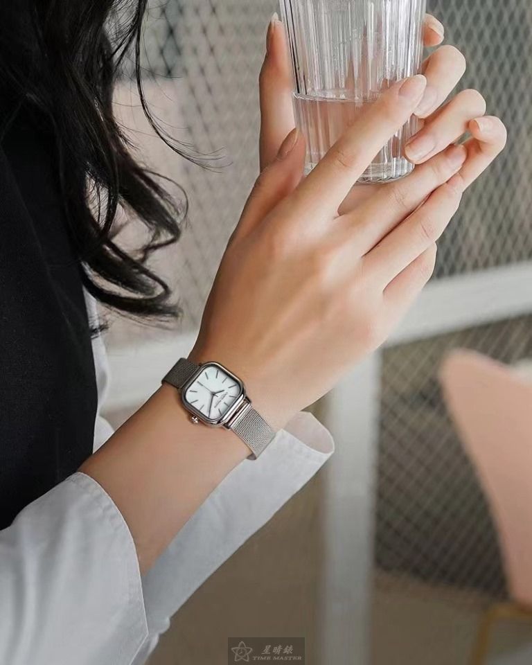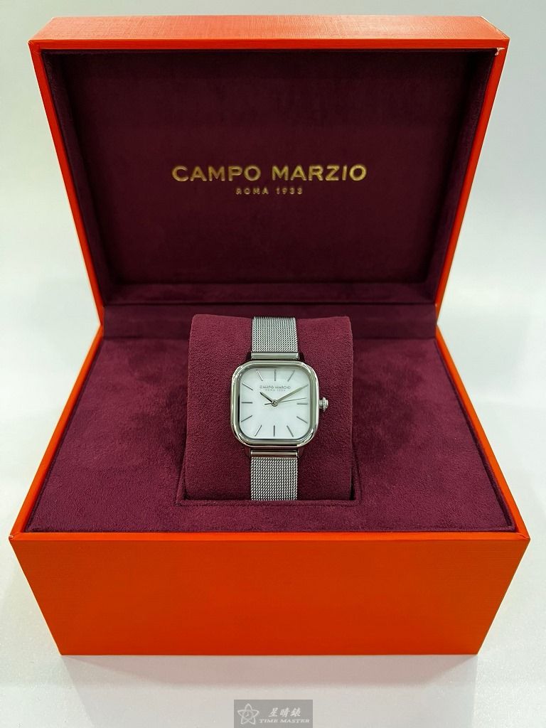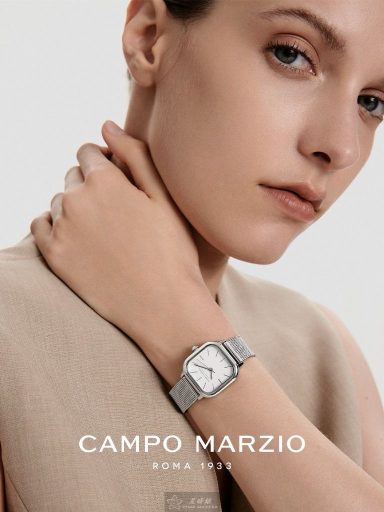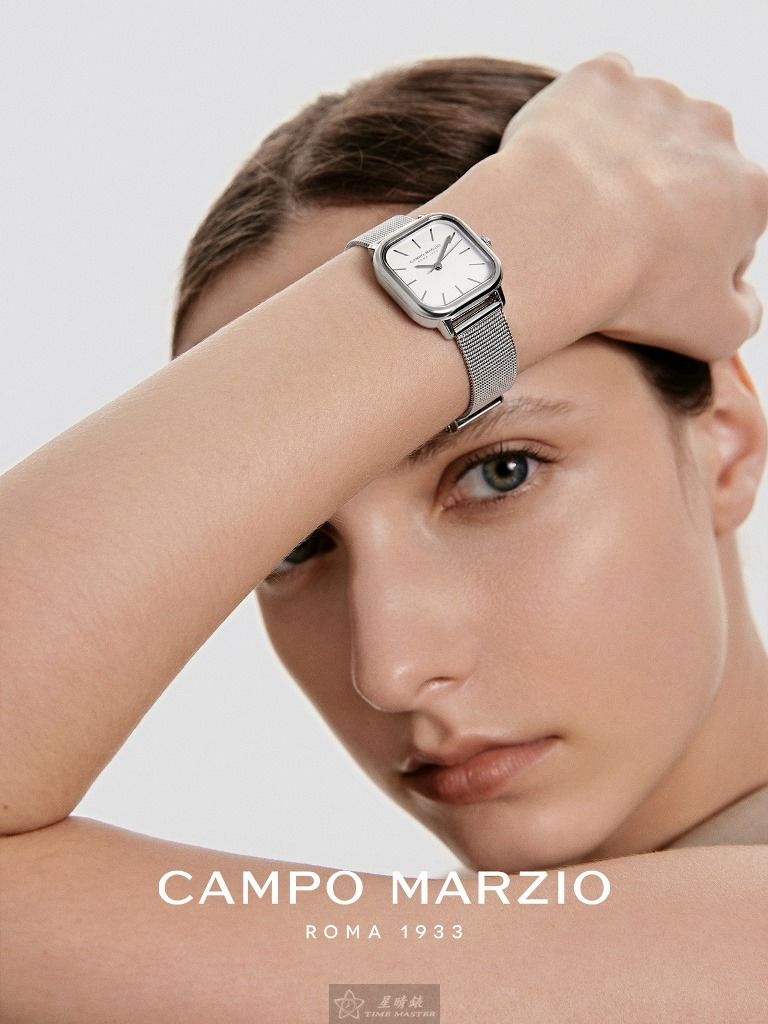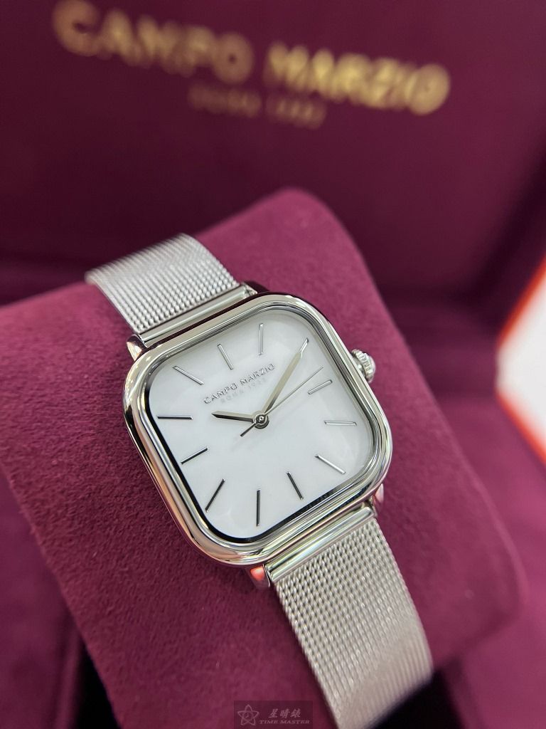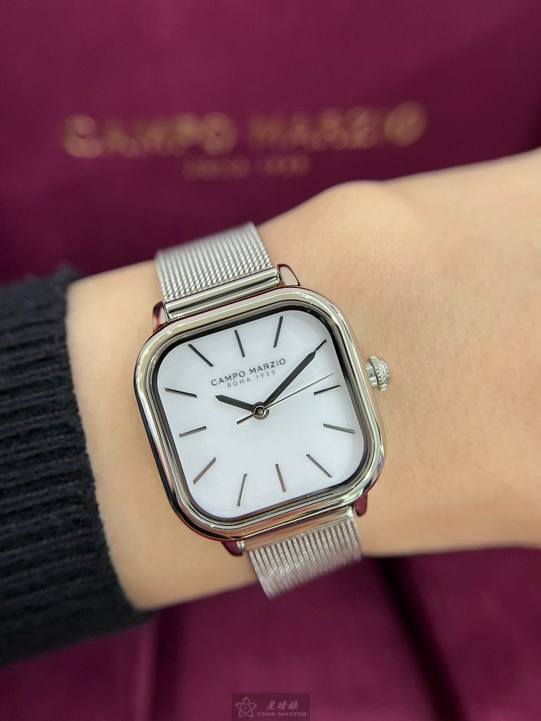 CampoMarzio手錶,編號CMW0018,26mm銀方形精鋼錶殼,白色中三針顯示錶面,銀色米蘭錶帶款