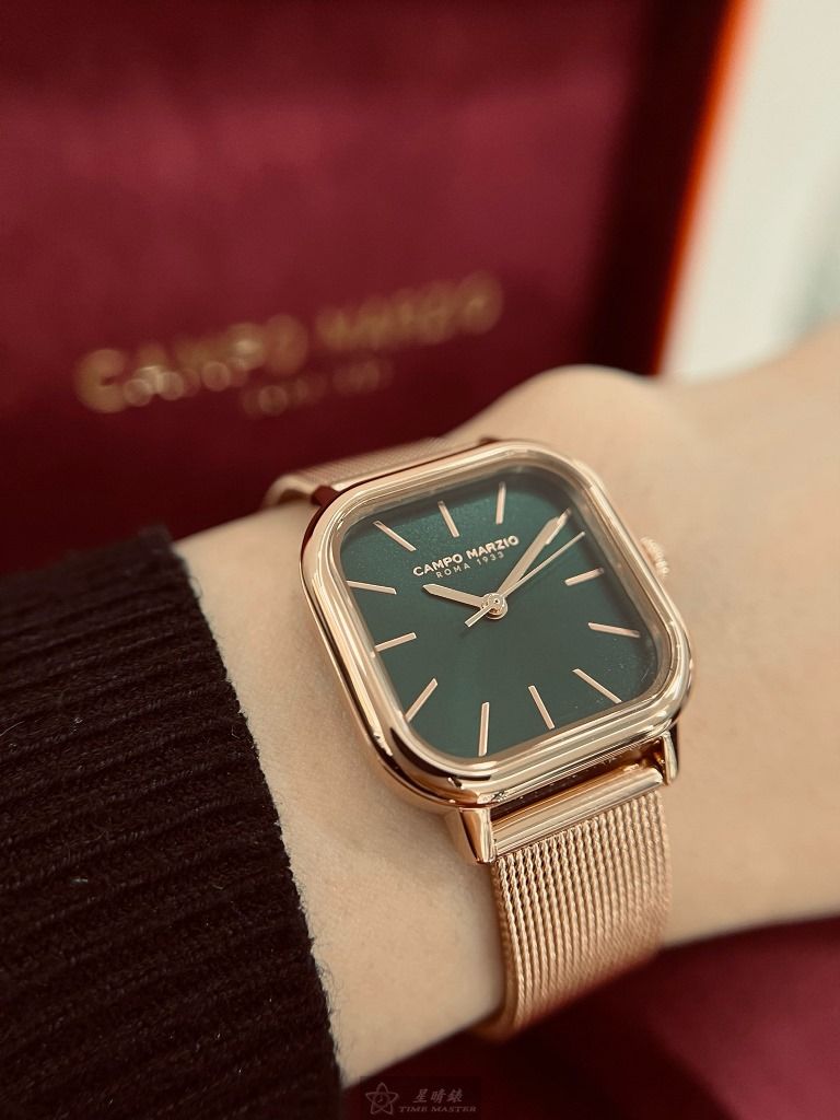 CAMPO MARZIO凱博馬爾茲CMW0021女錶,26mm方形錶殼搭配玫瑰金精鋼材質,墨綠色簡約面板顯示中三針功能,讓每一次抬腕都感受到細膩的工藝與設計。 輕巧的設計讓日常佩戴毫無負擔,即使長時間佩戴也能保持舒適感,展現女性優雅的日常節奏。 搭載頂級日本石英機芯,提供穩定精準的時間掌控,雖非頂尖品牌,但每一秒都可靠如初。 米蘭錶帶與玫瑰金色調相互呼應,呈現低調奢華感,價格雖不是最親民,卻保證品質精良。 強化型水晶玻璃耐刮防護,兼顧實用性與簡約美感,讓你在繁忙生活中仍保持自信儀態。 防水50米設計,日常生活防水無虞,即便小雨或洗手亦能安心佩戴,肩負每日生活的時間責任。 簡約中三針設計,清晰易讀,讓每個時間點都掌握得井然有序,實用與美感兼具。 每一只CMW0021都享有全球2年保固服務,無論身處何地,都能感受到品牌的用心與承諾。 玫瑰金與墨綠的搭配,呈現柔美又穩重的風格,適合多種場合,從日常到正式場合皆能輕鬆駕馭。 星晴錶業秉持精緻務實的態度打造此款女錶,雖非最頂尖,但在價格與品質間找到平衡,讓佩戴者感受到可靠與使命感。