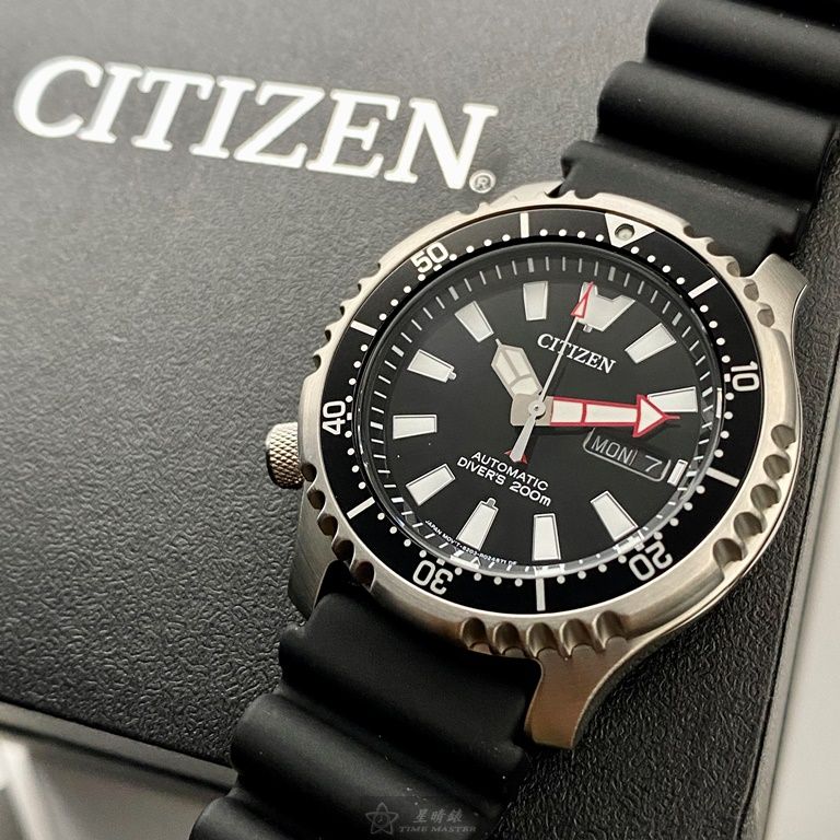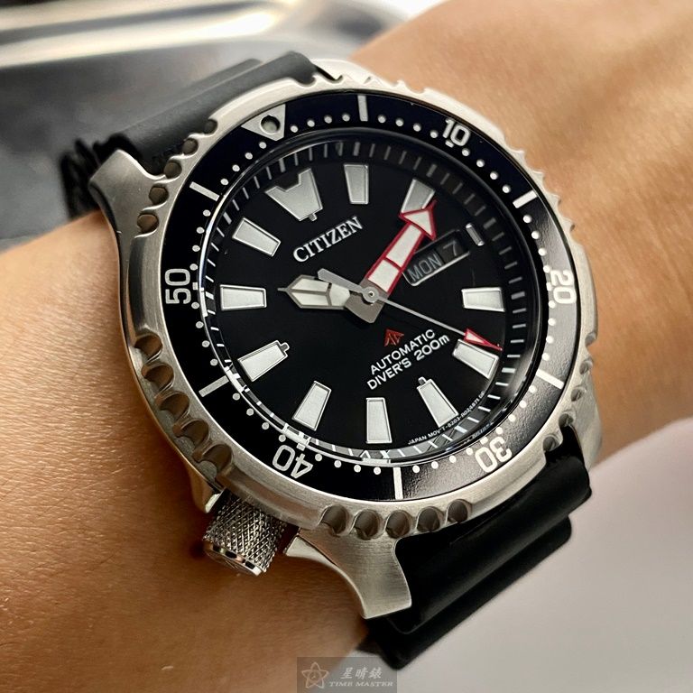 CITIZEN手錶,編號CI00015,42mm銀圓形精鋼錶殼,黑色潛水錶, 中三針顯示, 運動錶面,深黑色矽膠錶帶款