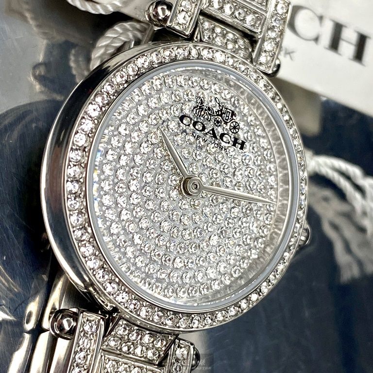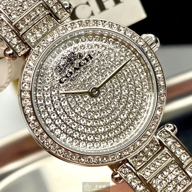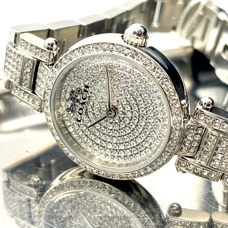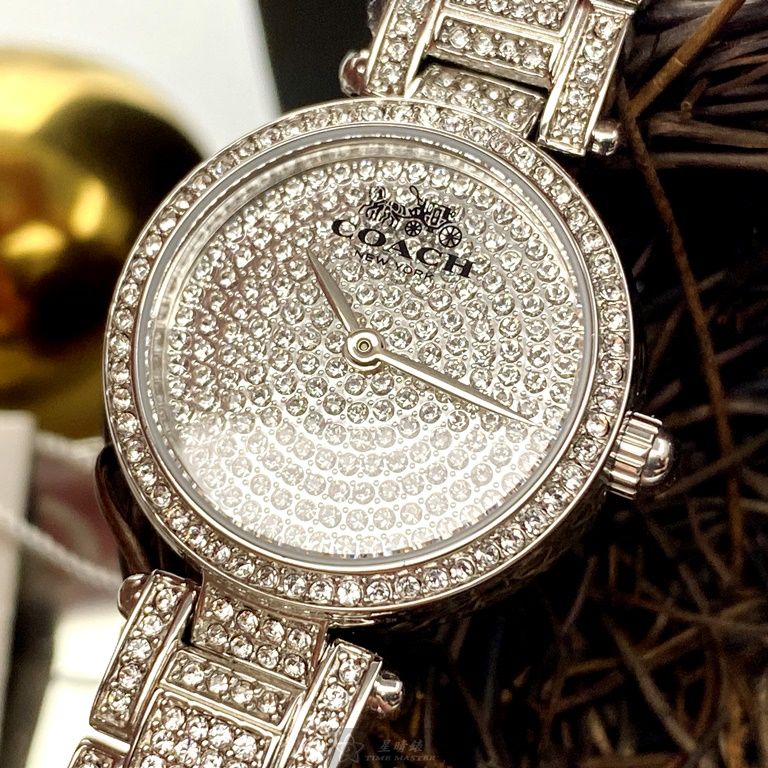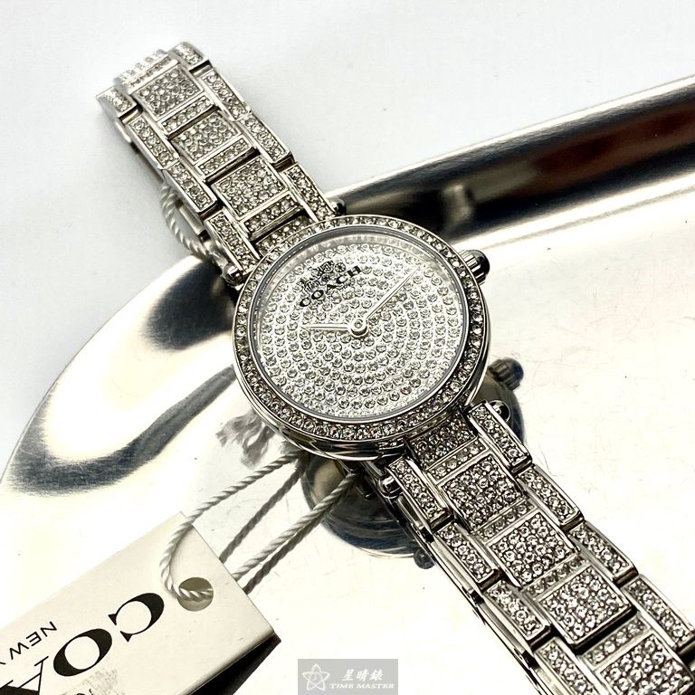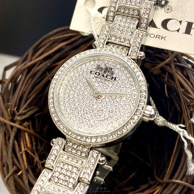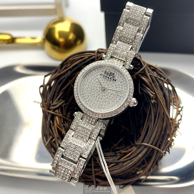 COACH手錶,編號CH00027,26mm銀圓形精鋼錶殼,銀色滿天星錶面,銀色精鋼錶帶款,值得珍藏好物!