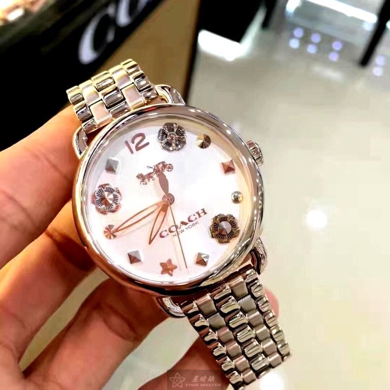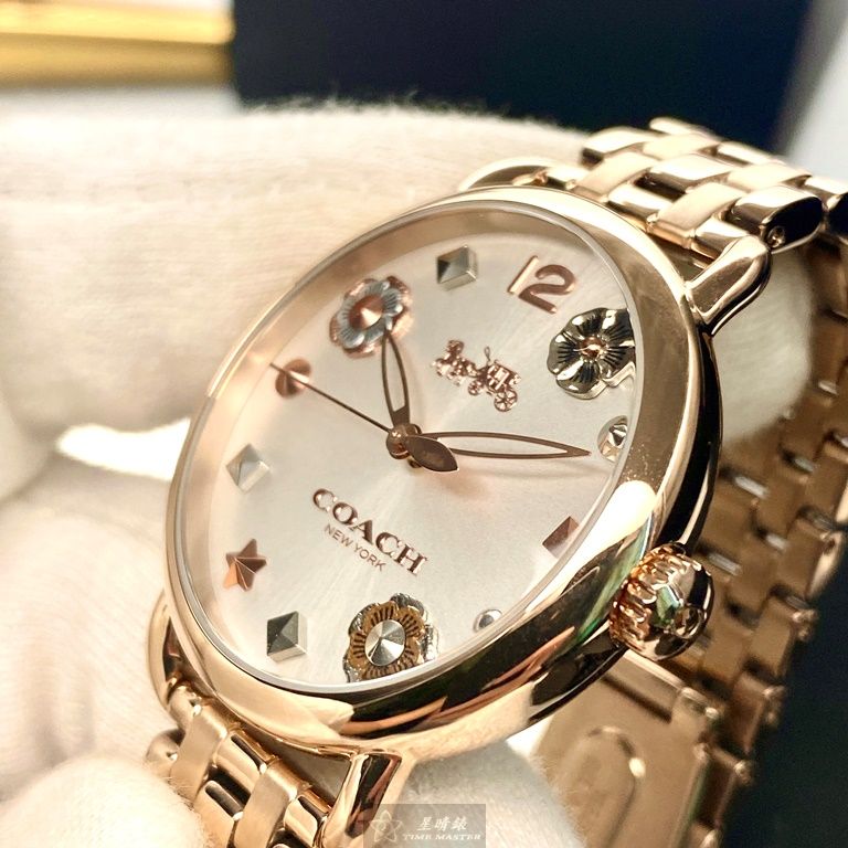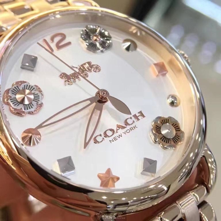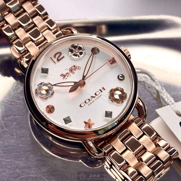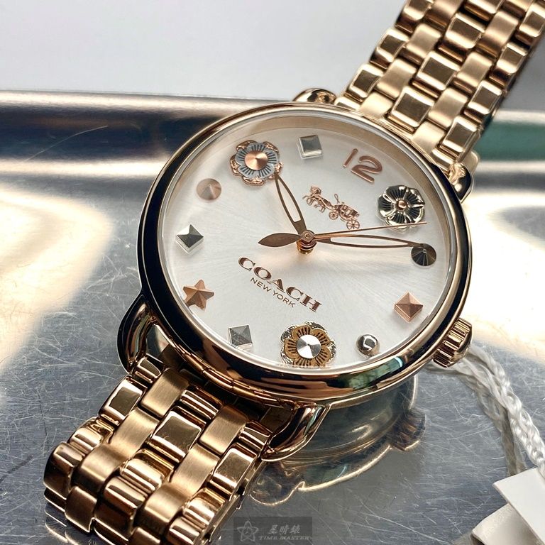 COACH手錶,編號CH00036,36mm玫瑰金圓形精鋼錶殼,白色簡約錶面,玫瑰金色精鋼錶帶款