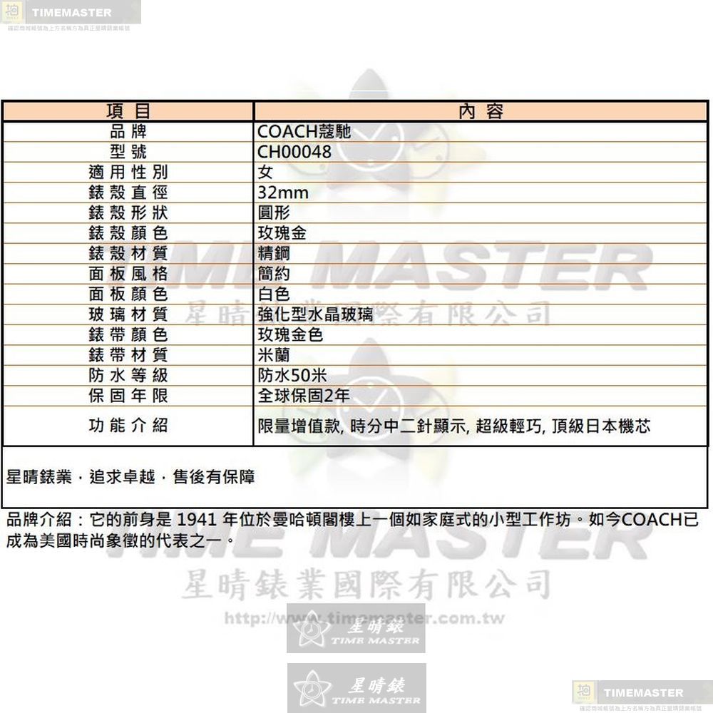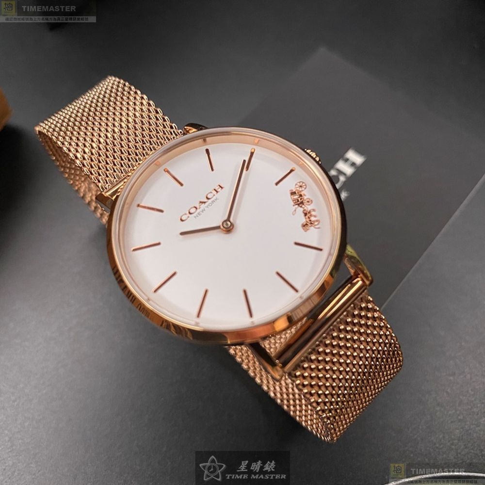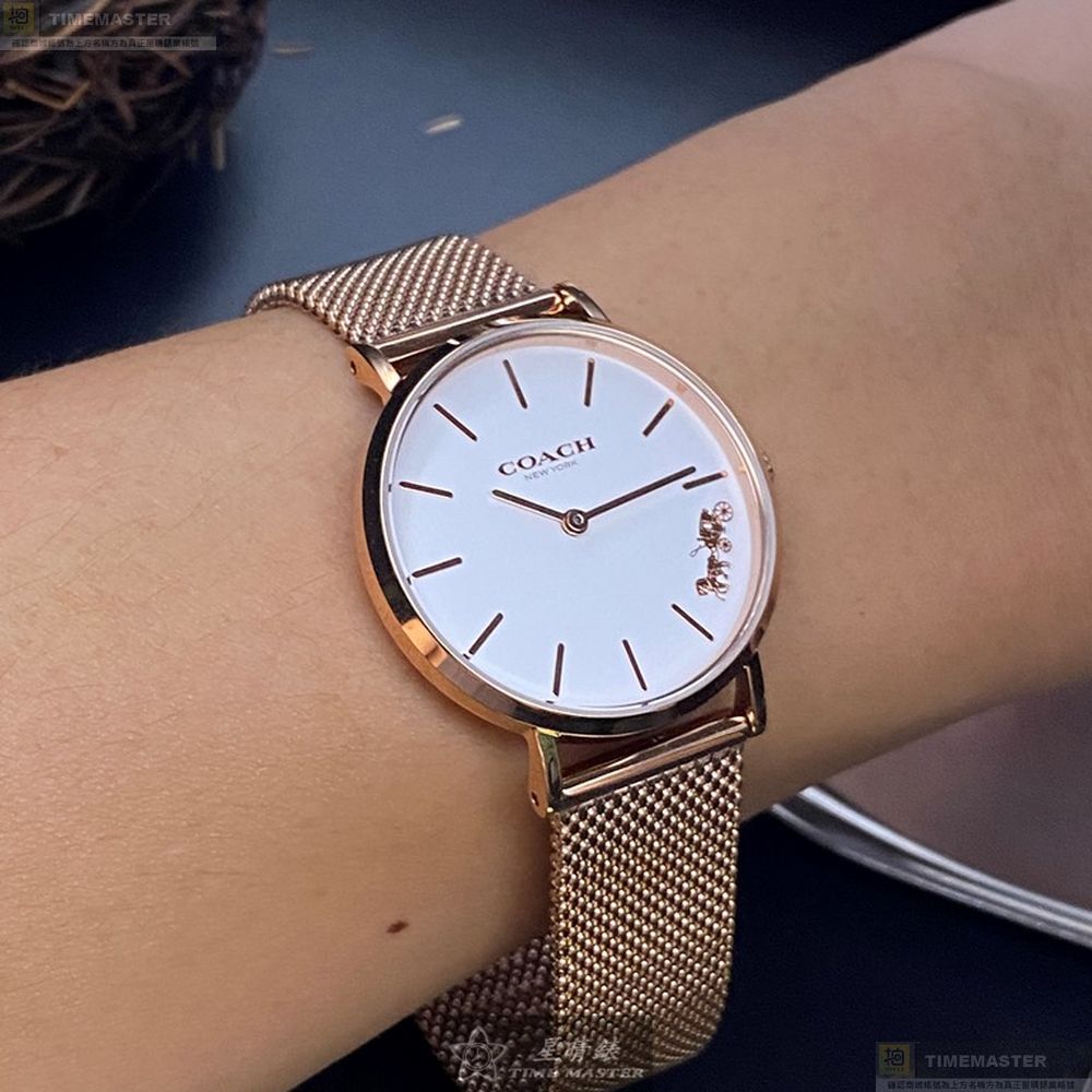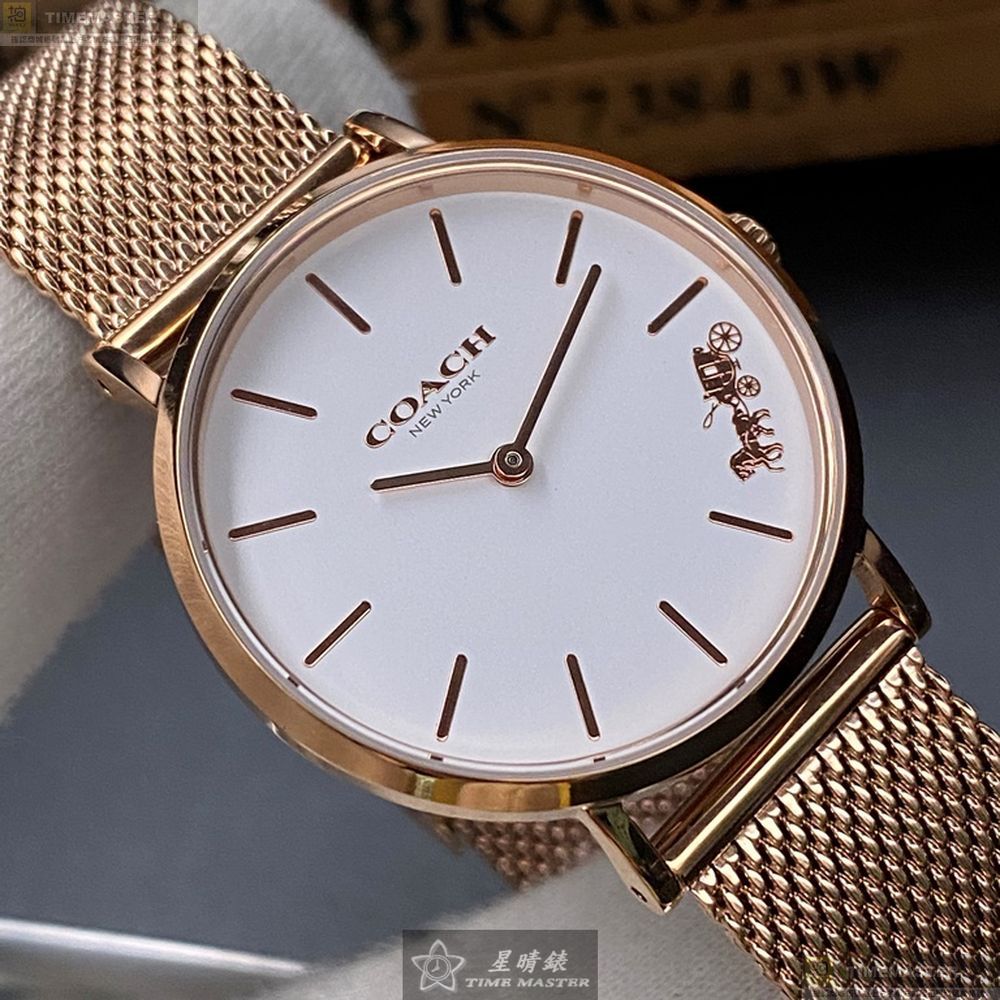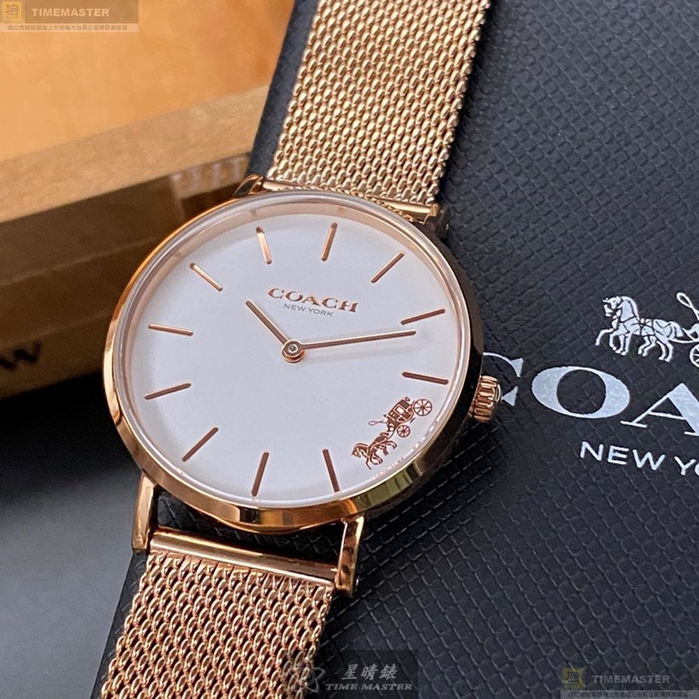 COACH手錶,編號CH00048,32mm玫瑰金圓形精鋼錶殼,白色簡約錶面,玫瑰金色米蘭錶帶款