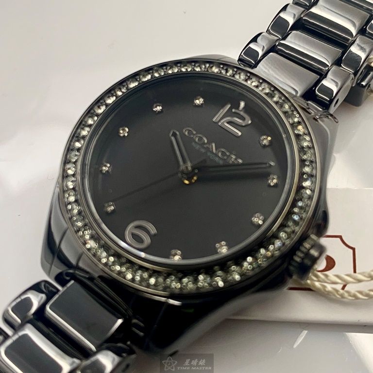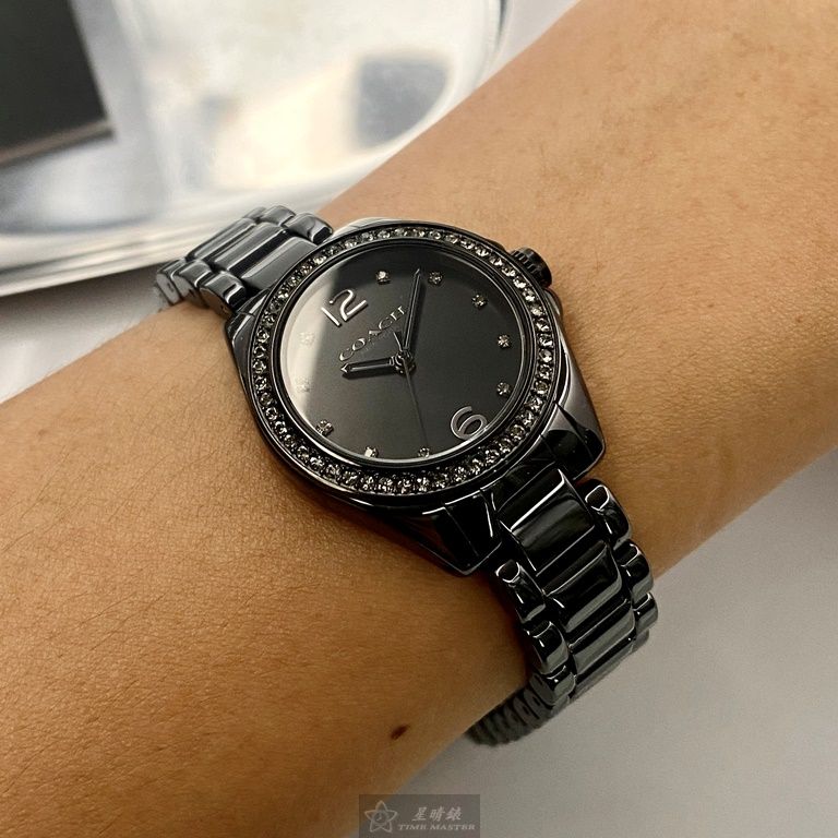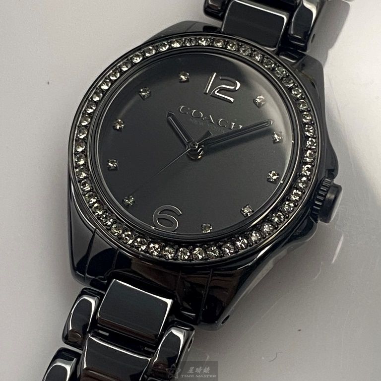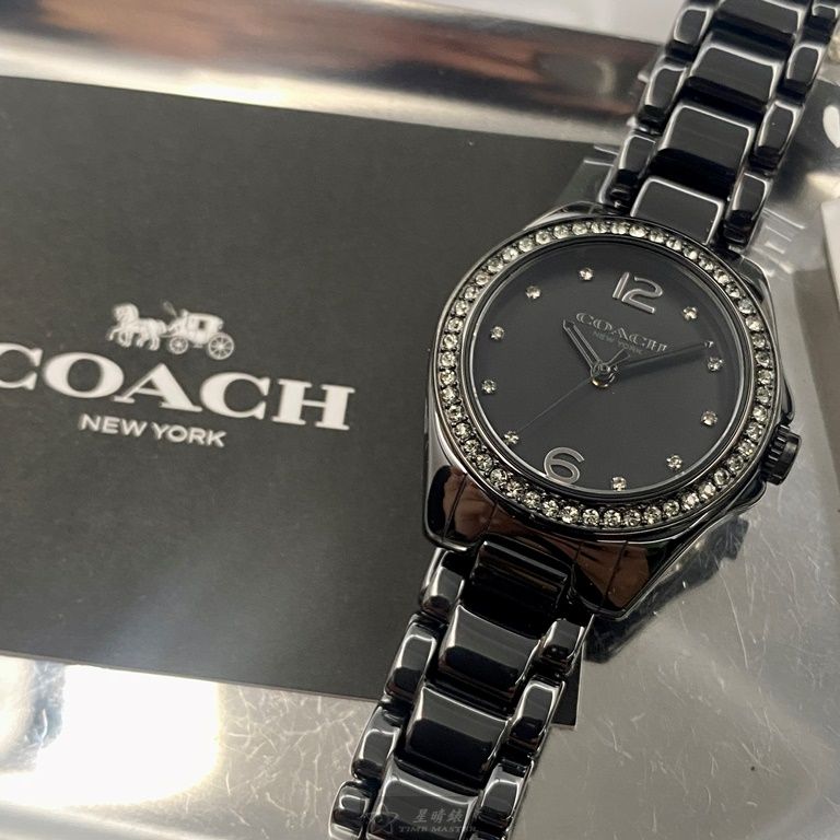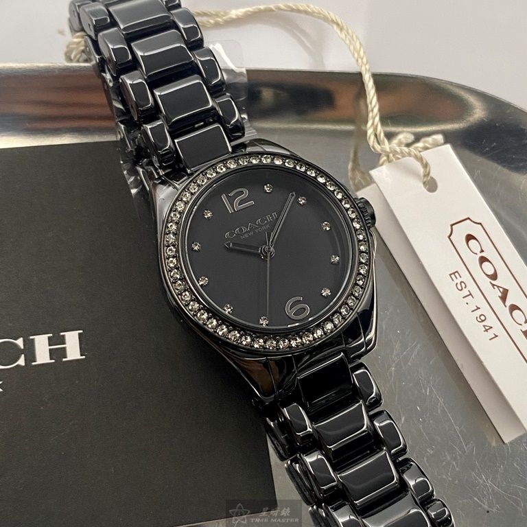 COACH手錶,編號CH00131,28mm黑圓形陶瓷錶殼,黑色簡約, 中三針顯示錶面,深黑色陶瓷錶帶款