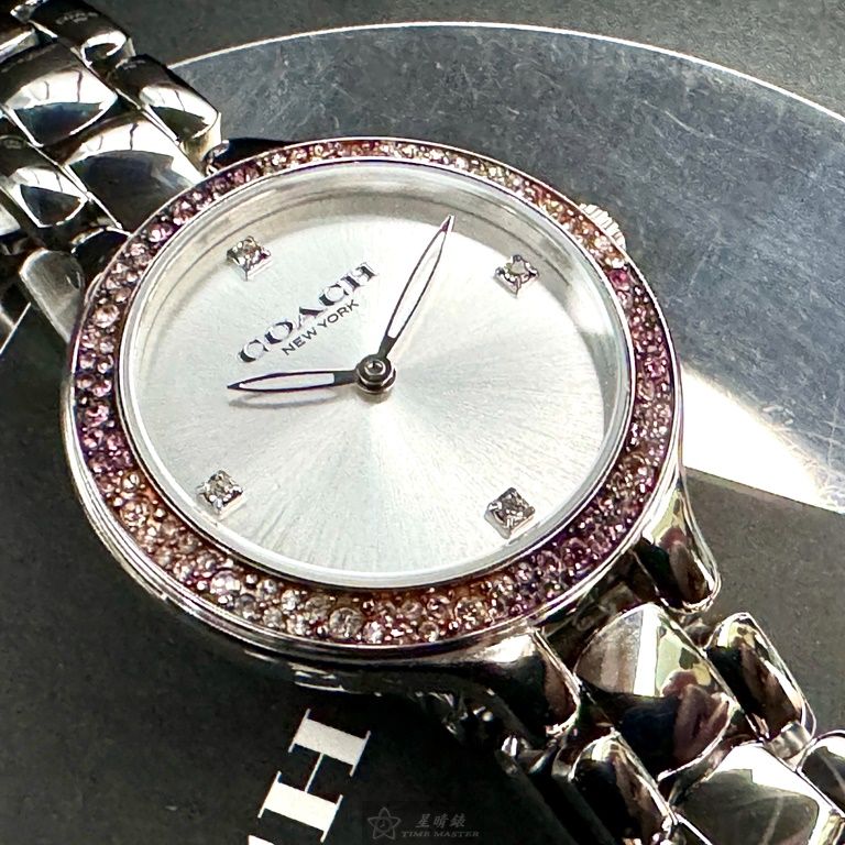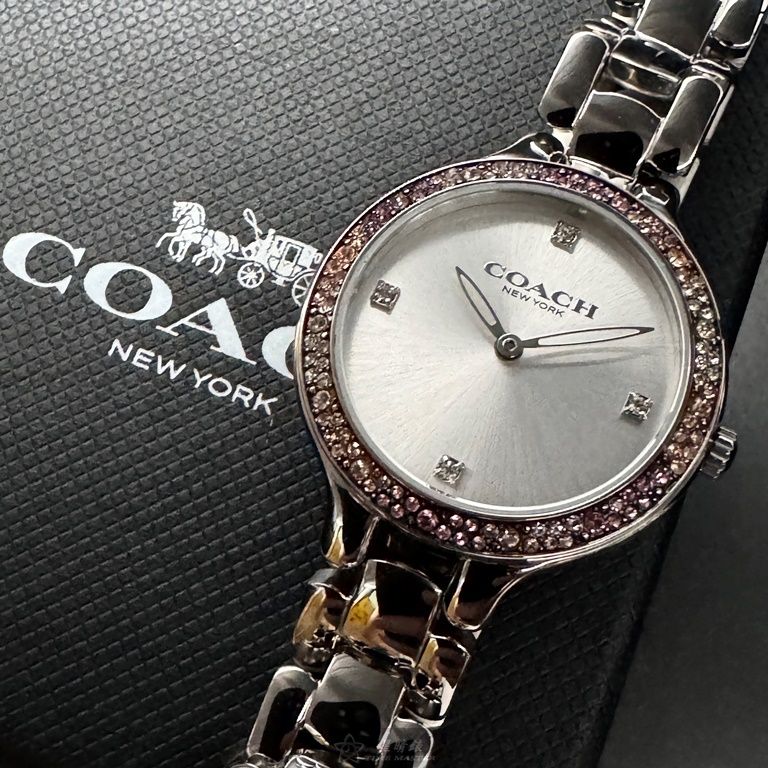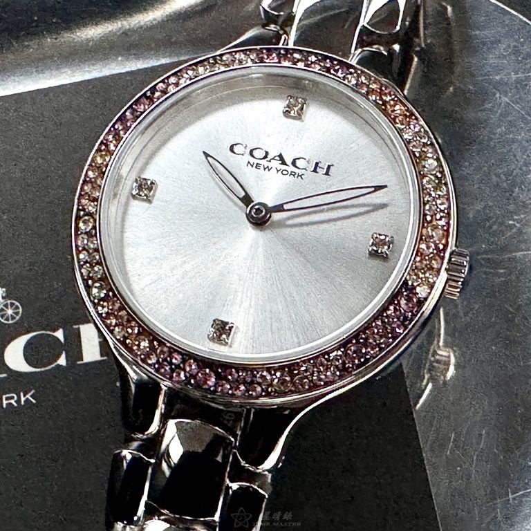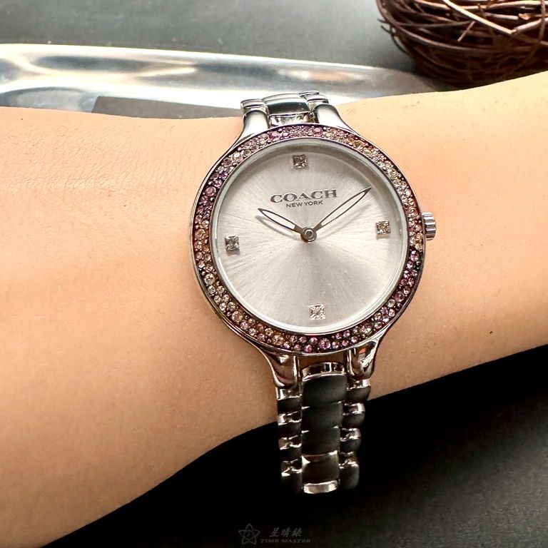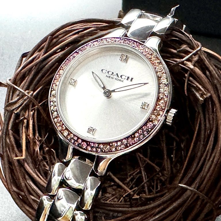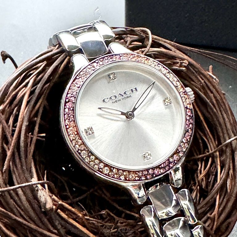 COACH手錶,編號CH00203,32mm銀圓形精鋼錶殼,銀白色簡約, 中二針顯示錶面,銀色精鋼錶帶款,婚禮必備!