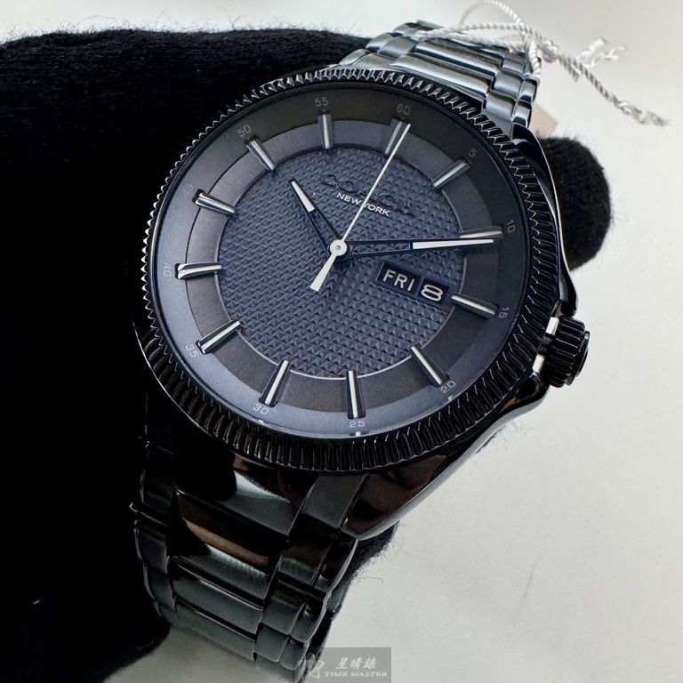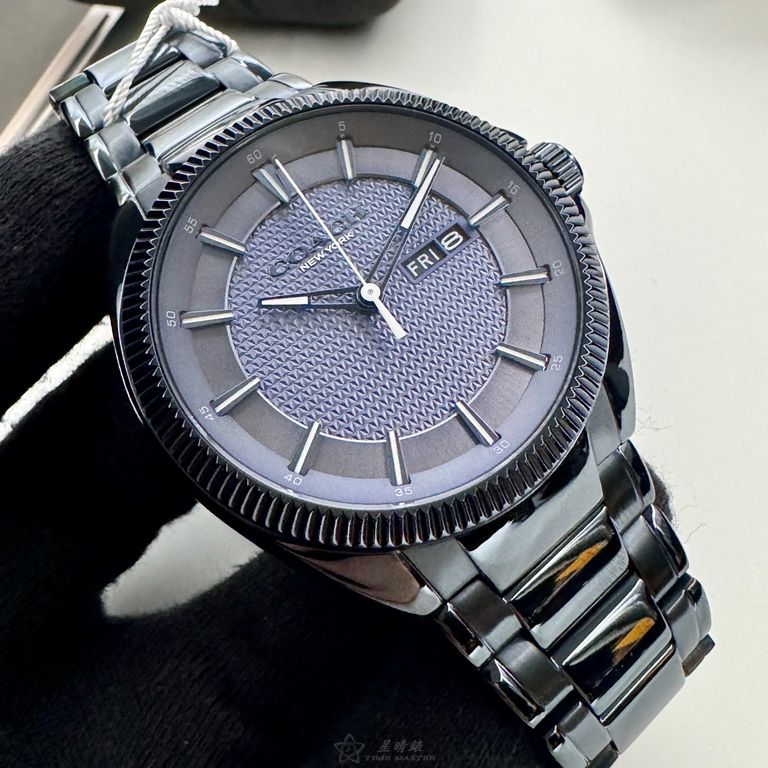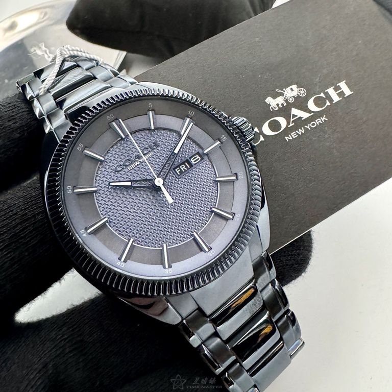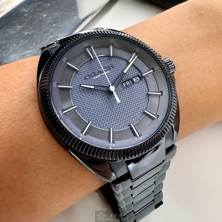 COACH手錶,編號CH00236,44mm寶藍圓形精鋼錶殼,寶藍色中三針顯示錶面,寶藍精鋼錶帶款