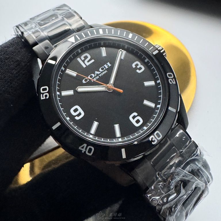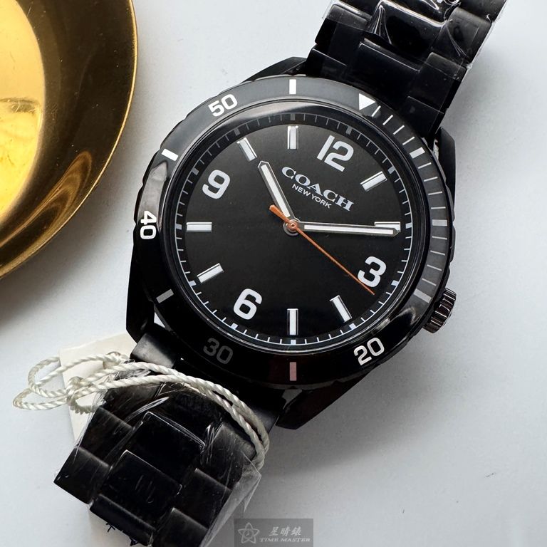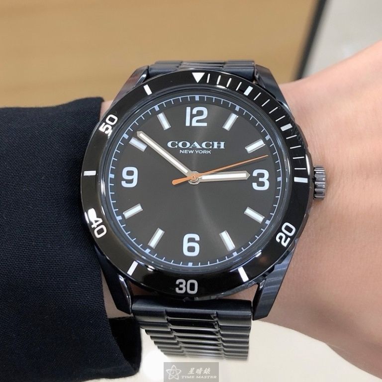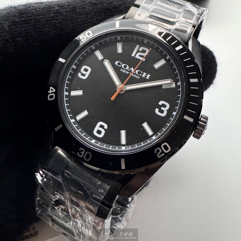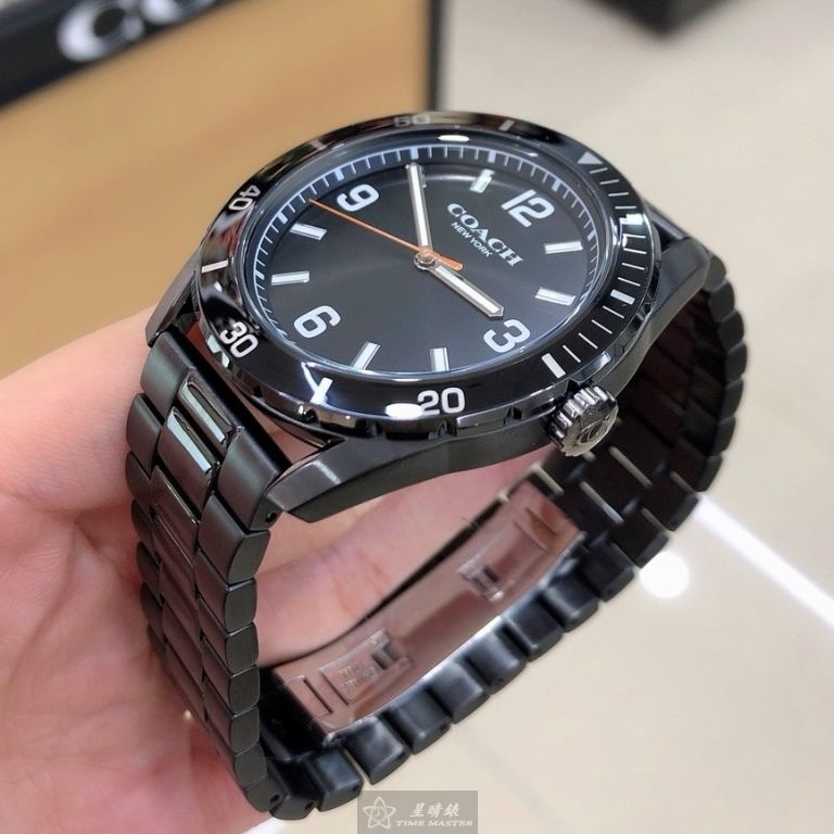 COACH手錶,編號CH00247,44mm黑圓形精鋼錶殼,黑色簡約, 中三針顯示, 運動錶面,深黑色精鋼錶帶款