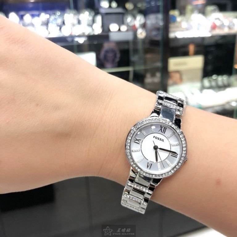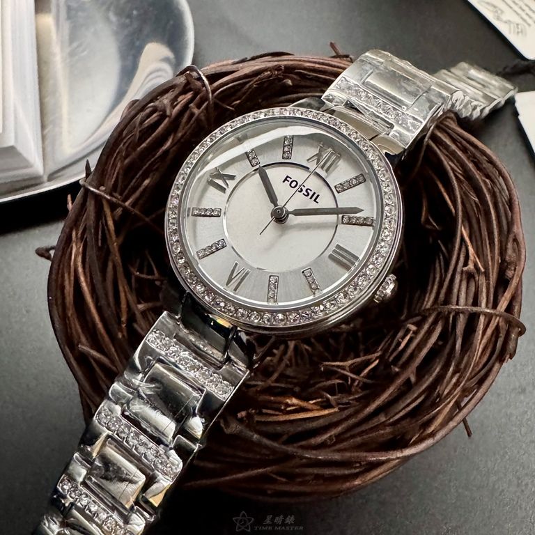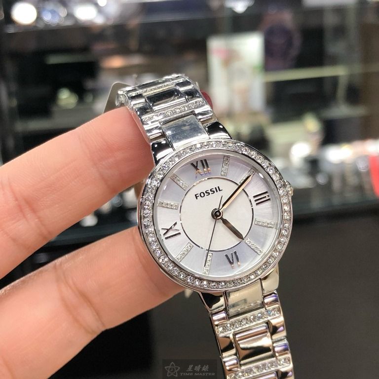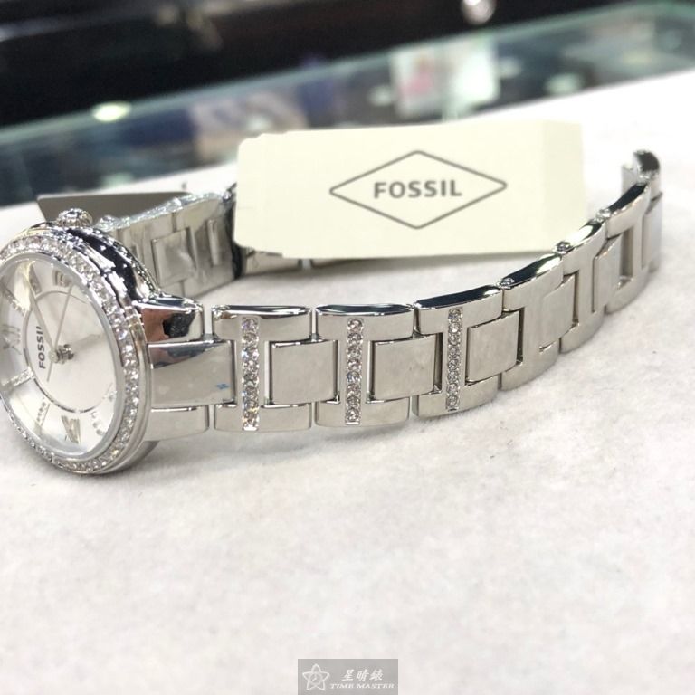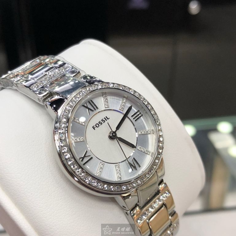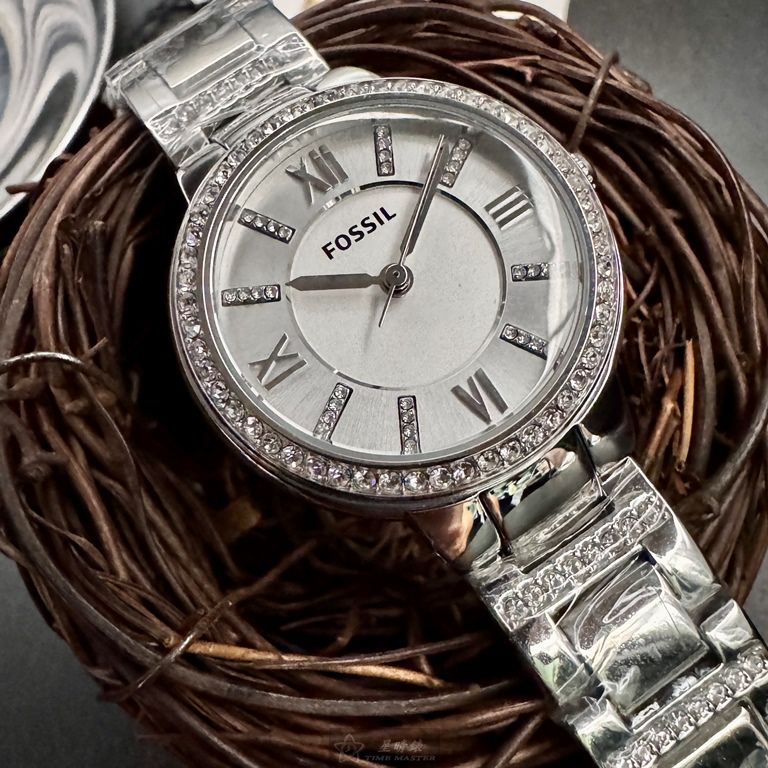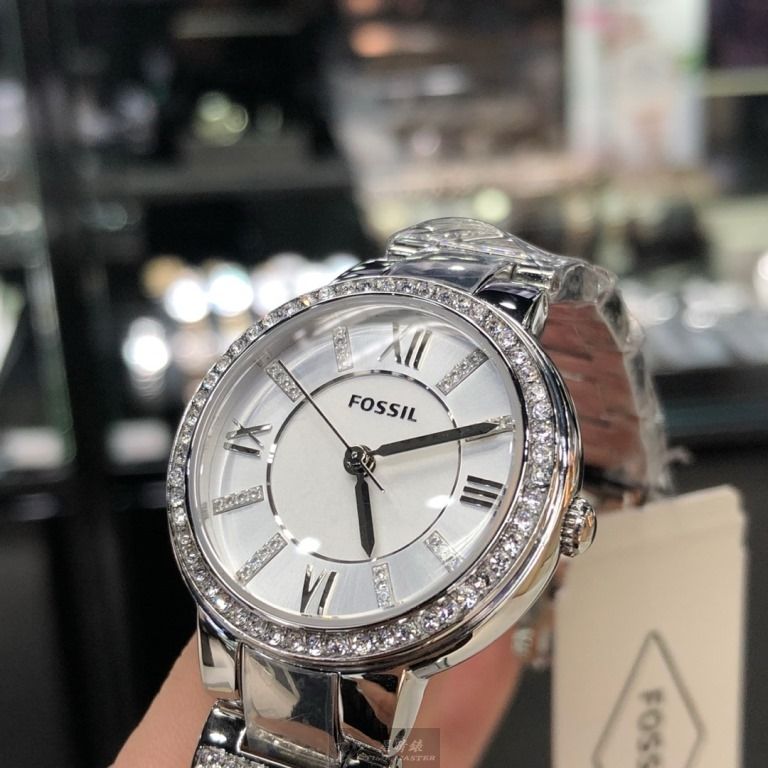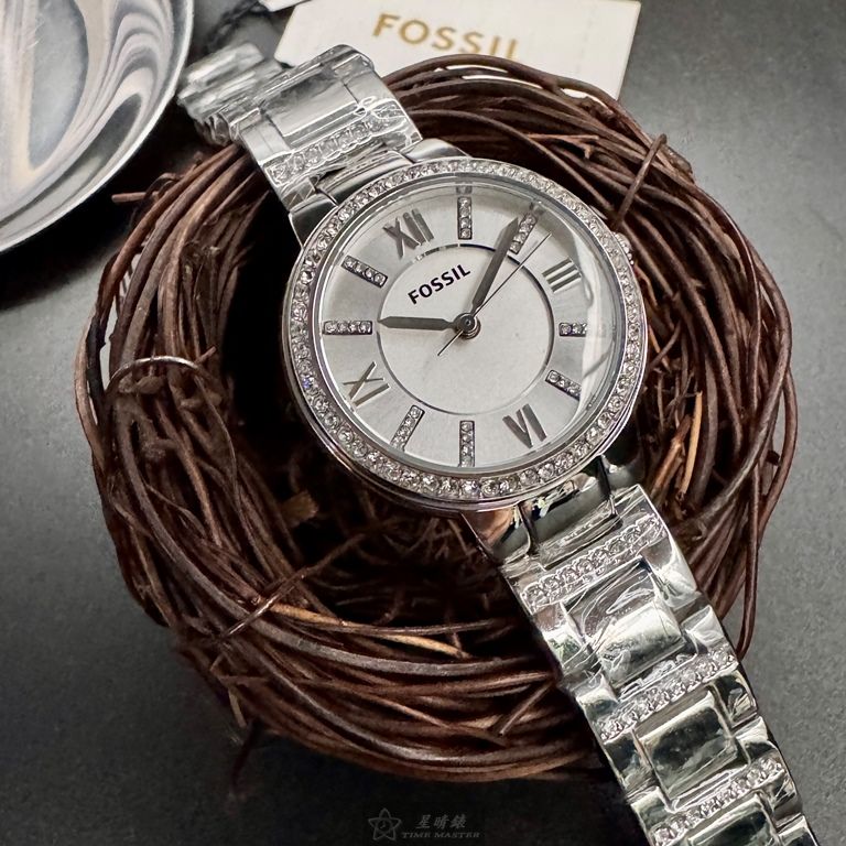 FOSSIL手錶,編號FS00133,36mm銀圓形精鋼錶殼,白色簡約, 羅馬數字, 中三針顯示錶面,銀色精鋼錶帶款