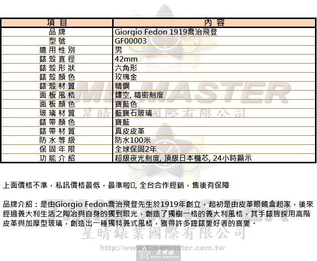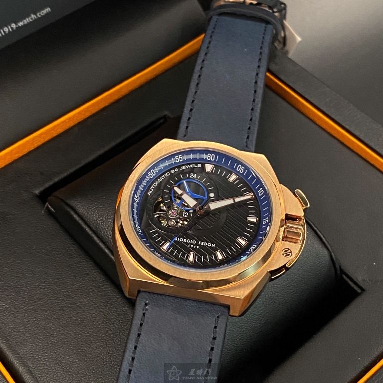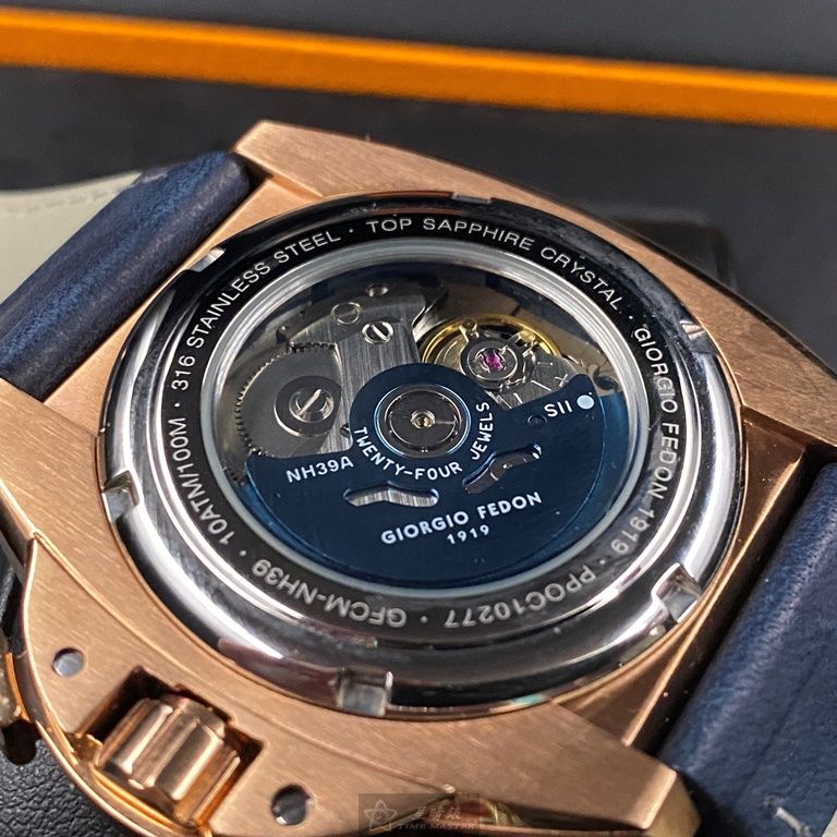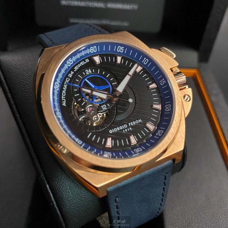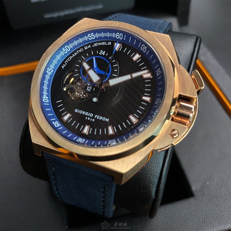 Giorgio Fedon 1919喬治飛登男錶,編號GF00003,42mm玫瑰金錶殼,寶藍錶帶款