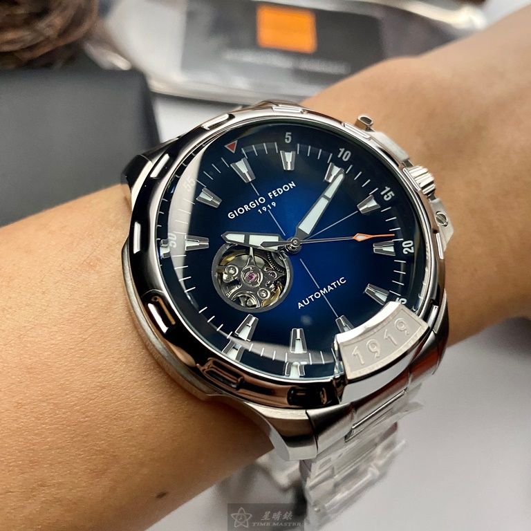 星晴錶業以務實精神推出這款Giorgio Fedon 1919 GF00085,雖然不是最奢華的選擇,但用料與做工始終踏實可靠。 這只46mm精鋼男錶以寶藍鏤空面盤呈現乾淨結構,把自動機械的律動坦率地展示給你。 銀色精鋼錶殼與錶帶一體成型,帶來穩固手感,價格雖不算最低,但以這種紮實度來看依然值得。 藍寶石加厚玻璃提升日常耐用度,凸面設計讓光影邊緣多了一分深度,不靠浮誇也能吸引目光。 頂級日本機芯雖然不是最頂尖的規格,但精準度與穩定度絕對能陪你長時間工作。 100米防水讓它能在繁忙與意外之間保持可靠,像是一項默默扛起責任的小裝備。 超級夜光刻度讓你在光線不足的時刻,也能清楚掌握時間,不辜負一只工具錶該有的使命。 中三針布局保持乾淨視野,讓讀時直覺迅速,沒有多餘裝飾,只求把基本做好。 錶殼與錶帶的銀藍配色展現低調堅定的風格,不須炫耀也能讓人感受到它的實力。 全球兩年保固提供一份踏實後盾,讓你買下的不是浮誇承諾,而是一份可靠能用的品質。