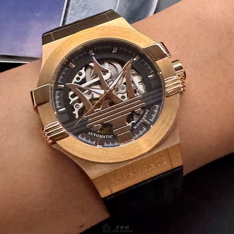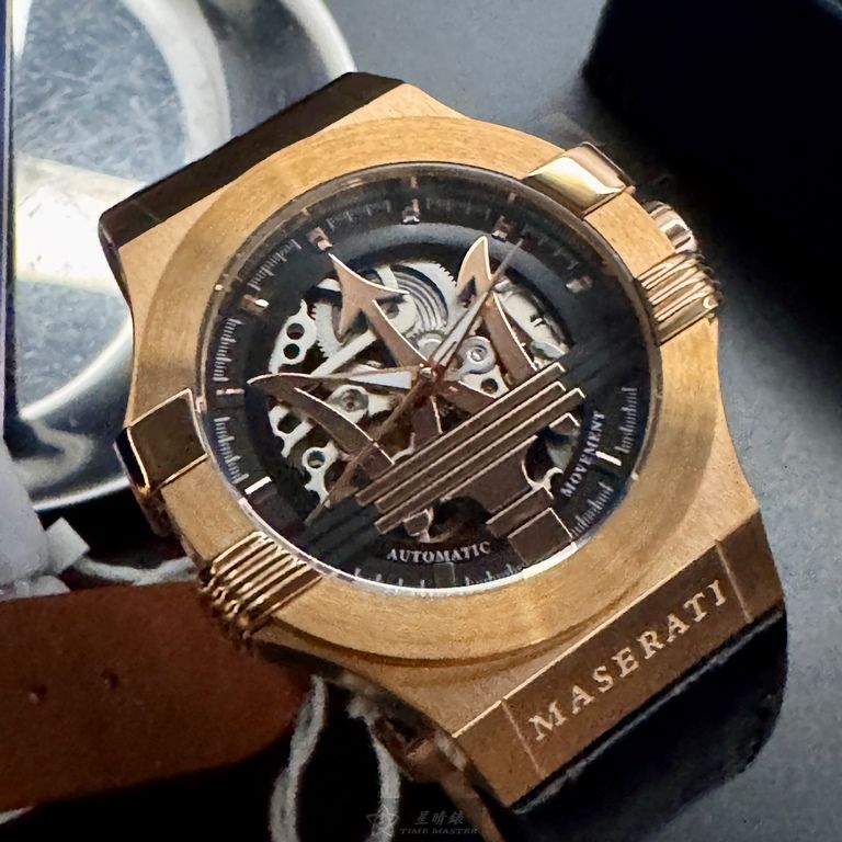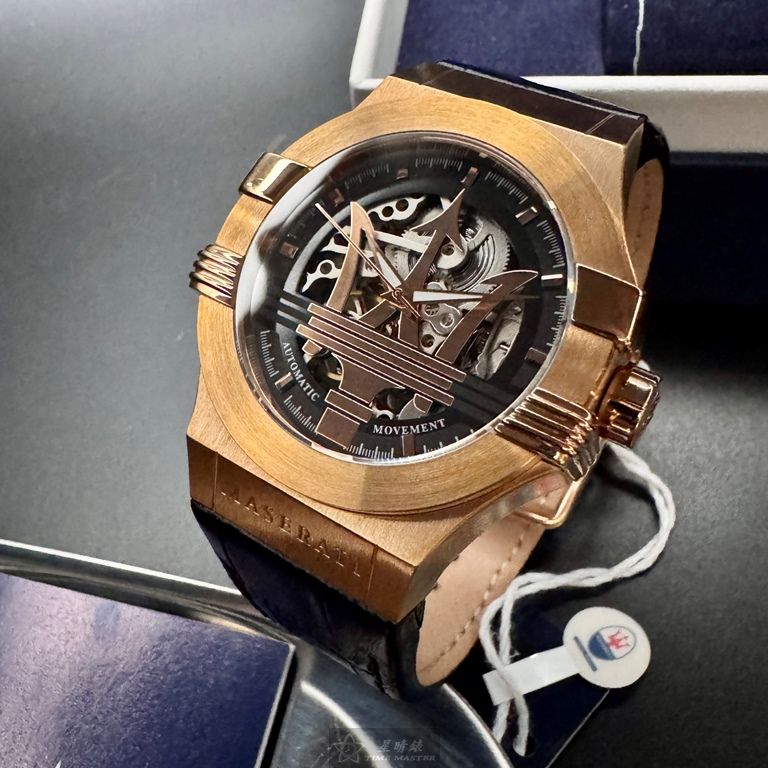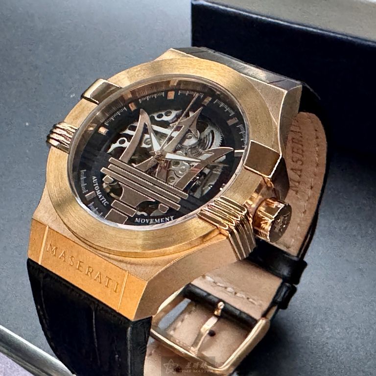 MASERATI手錶,編號R8821108002,42mm玫瑰金錶殼,深黑色錶帶款