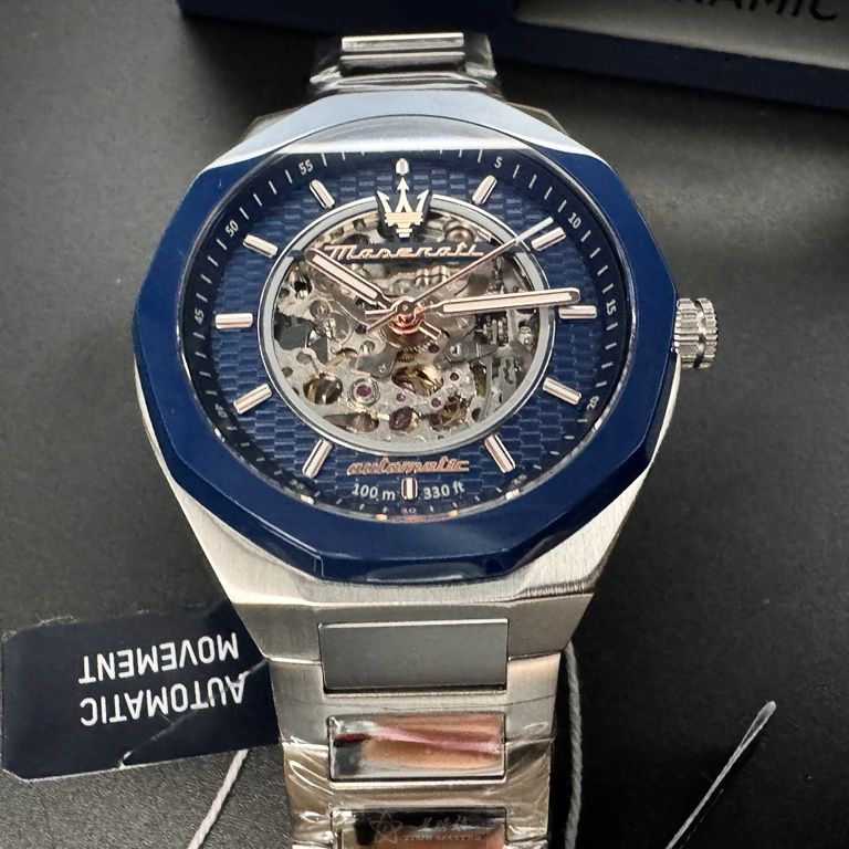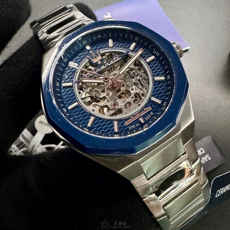 MASERATI手錶,編號R8823142004,46mm寶藍錶殼,銀色錶帶款