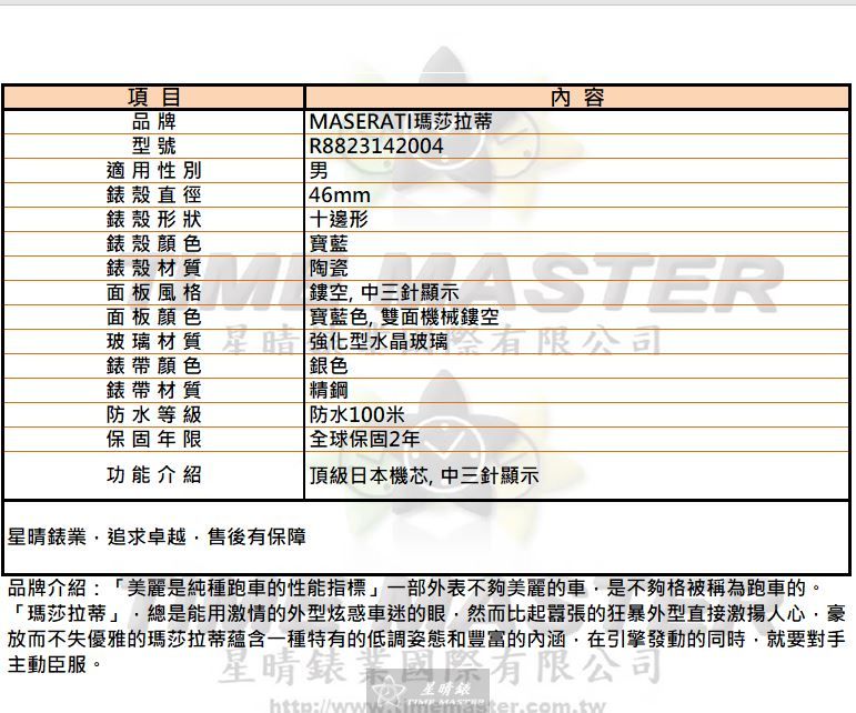 2.MASERATI-瑪莎拉蒂手錶-台灣第三家販售實體通路商
