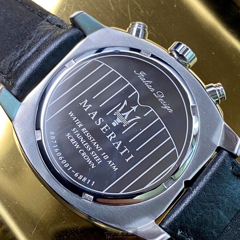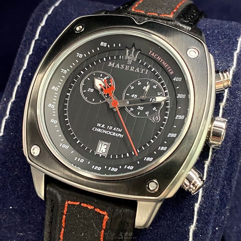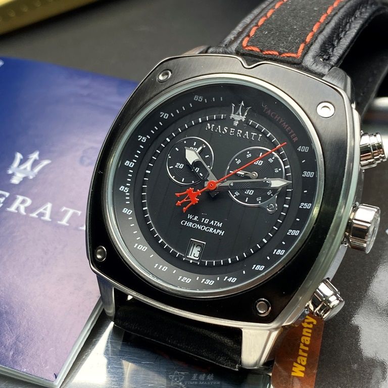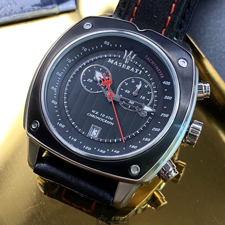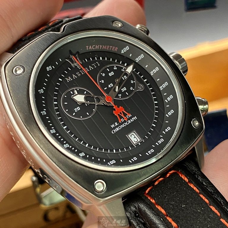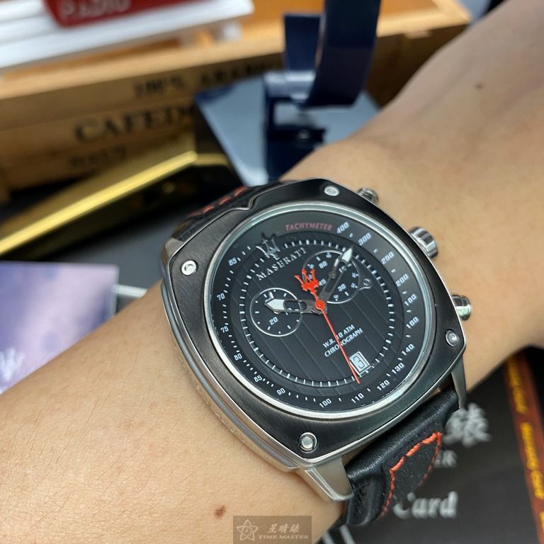 MASERATI手錶,編號R8871606001,44mm黑, 銀錶殼,深黑色錶帶款