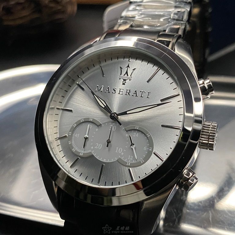 MASERATI手錶,編號R8871612012,46mm銀錶殼,深黑色錶帶款