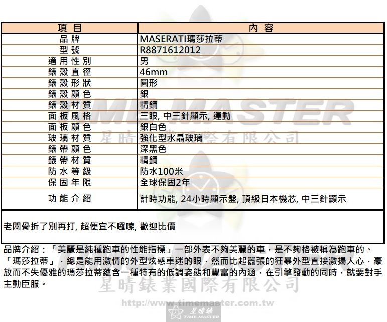 2.MASERATI-瑪莎拉蒂手錶-台灣第三家販售實體通路商