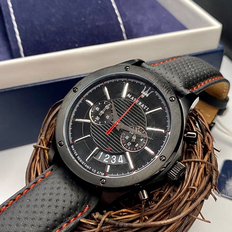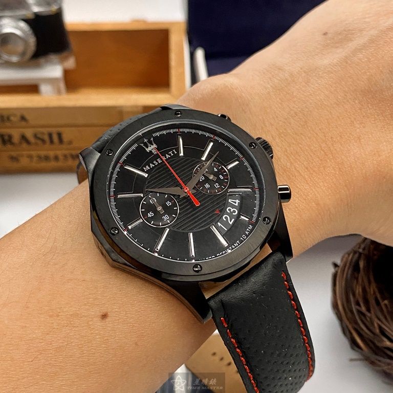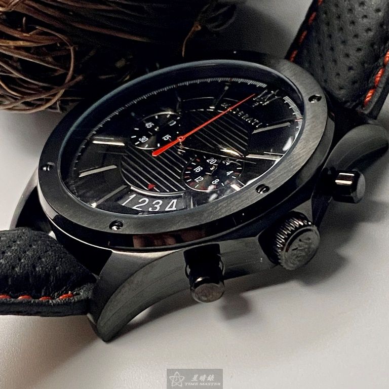 MASERATI手錶,編號R8871627004,46mm黑錶殼,黑紅色錶帶款