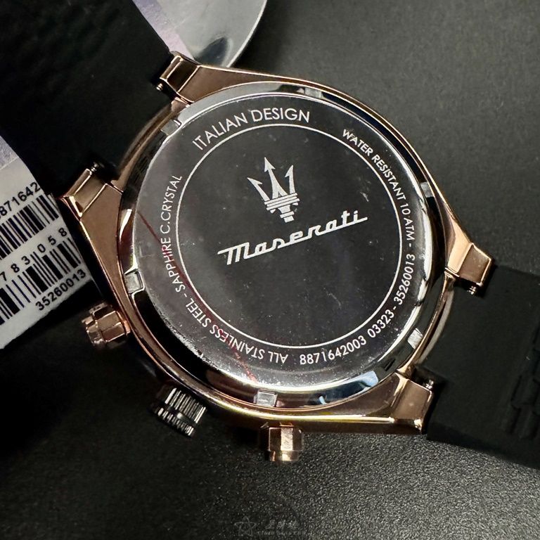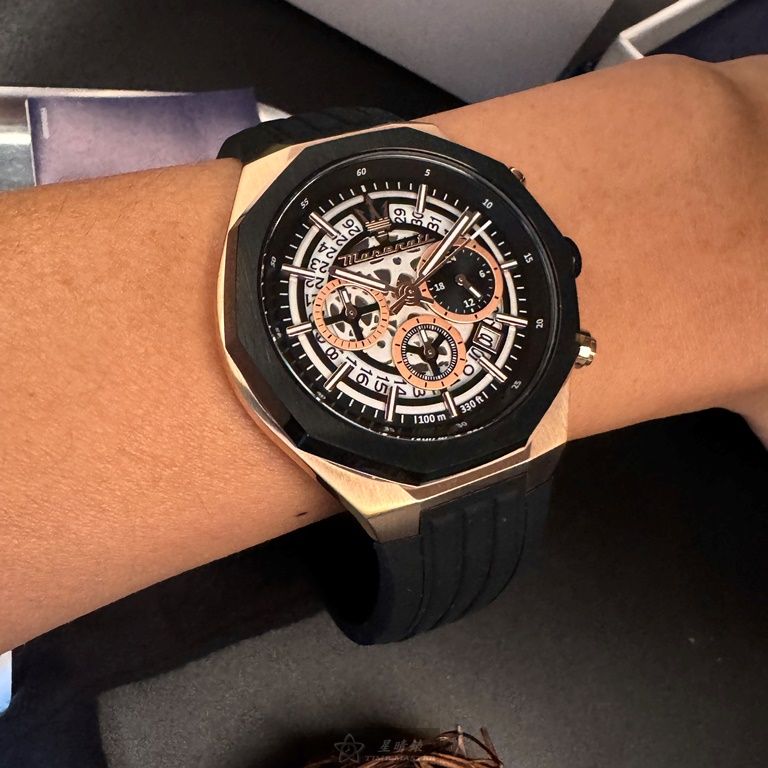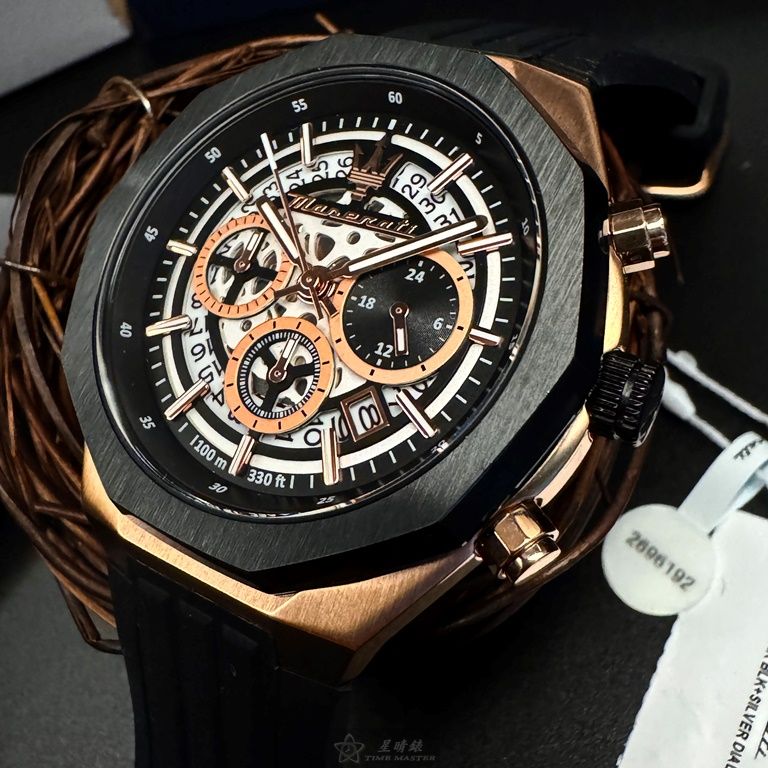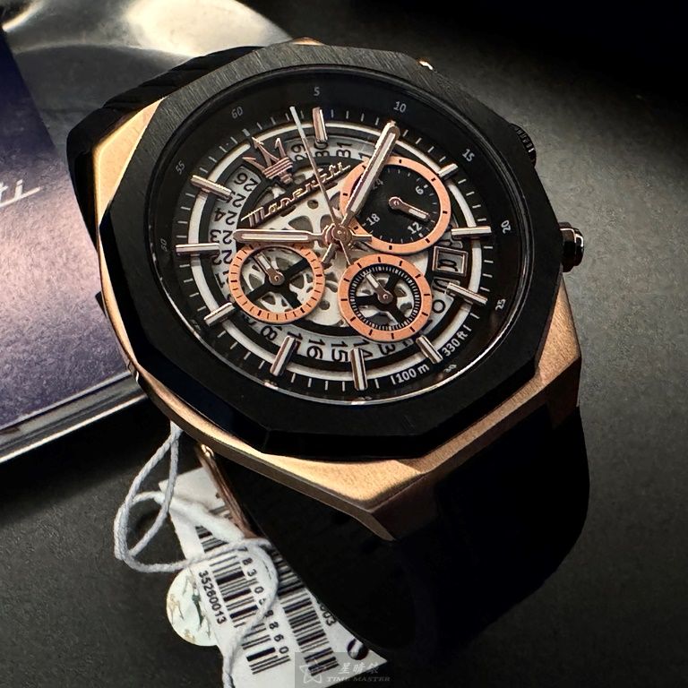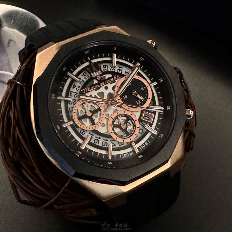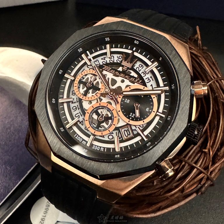 MASERATI手錶,編號R8871642003,46mm玫瑰金錶殼,深黑色錶帶款