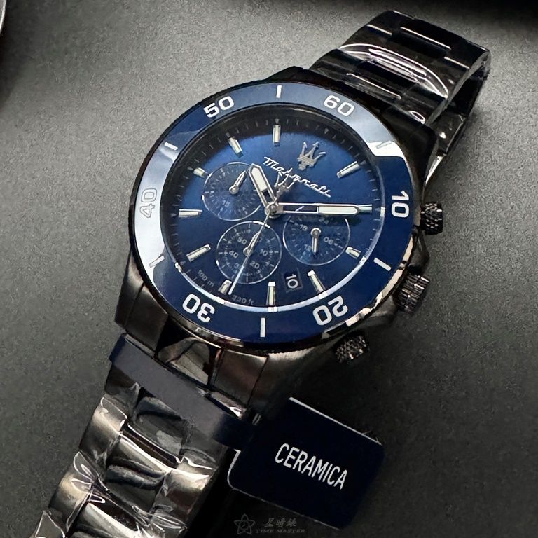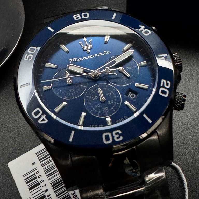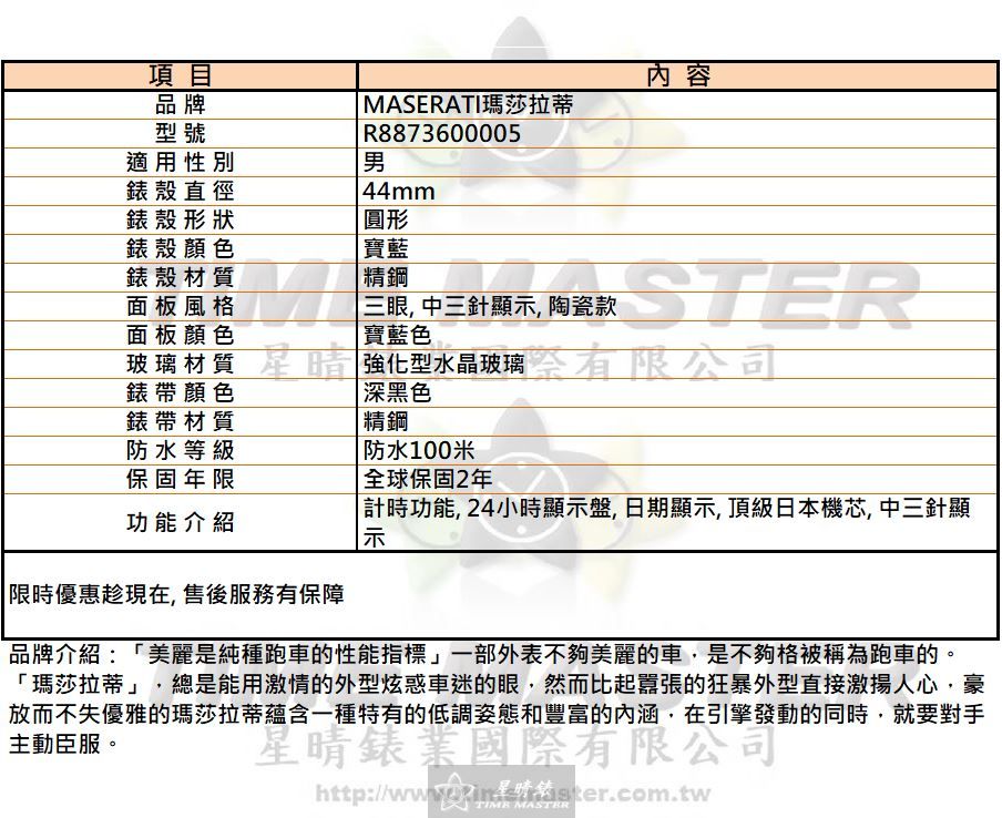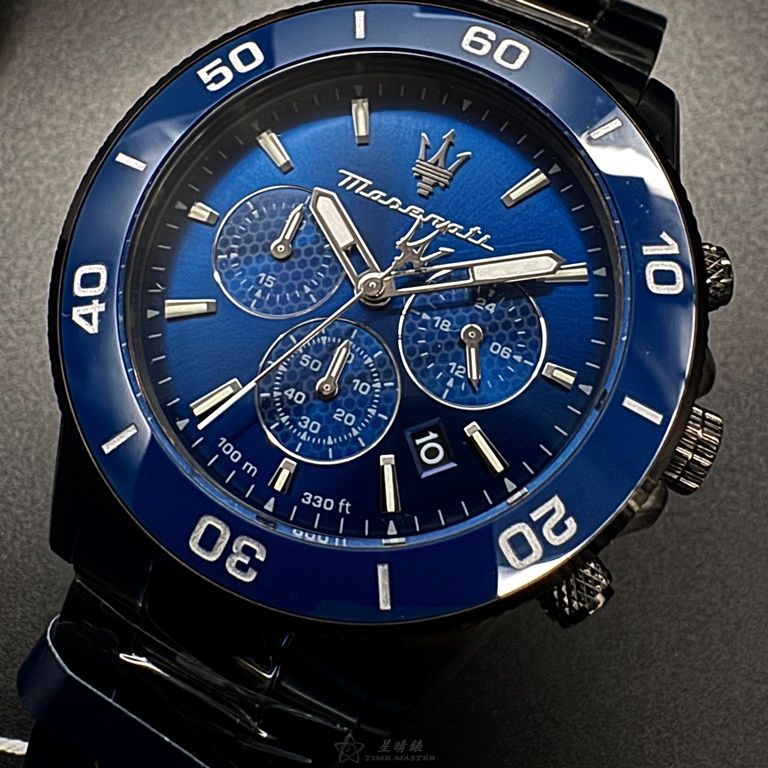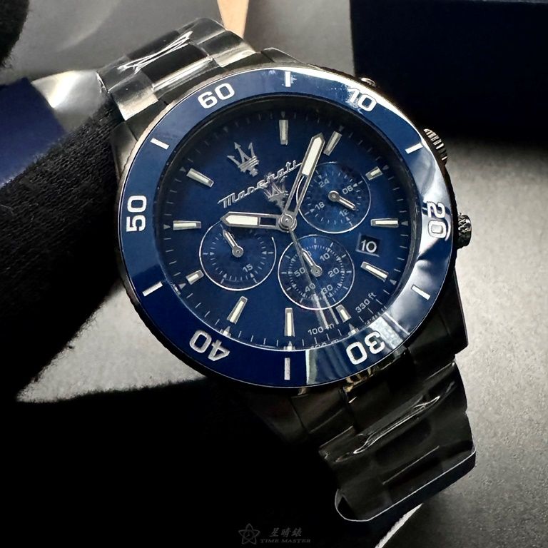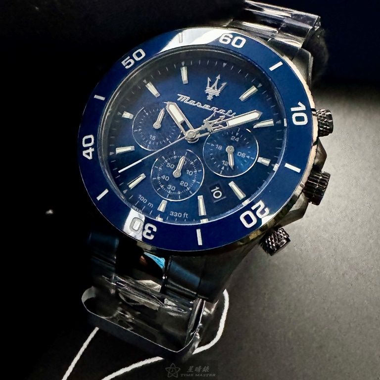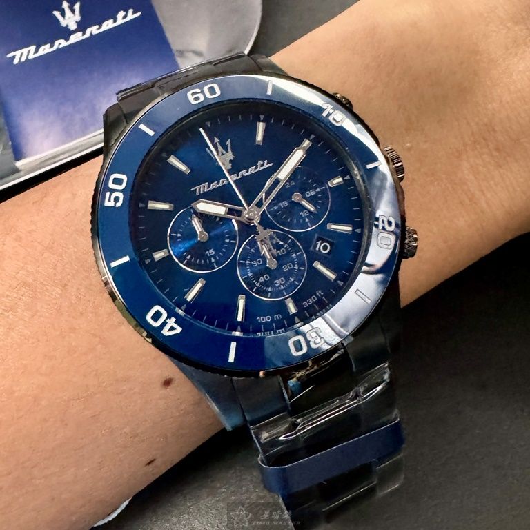 MASERATI手錶,編號R8873600005,44mm寶藍錶殼,深黑色錶帶款