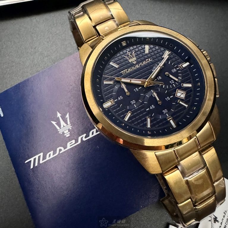 MASERATI手錶,編號R8873621021,44mm銀, 金色錶殼,金色錶帶款