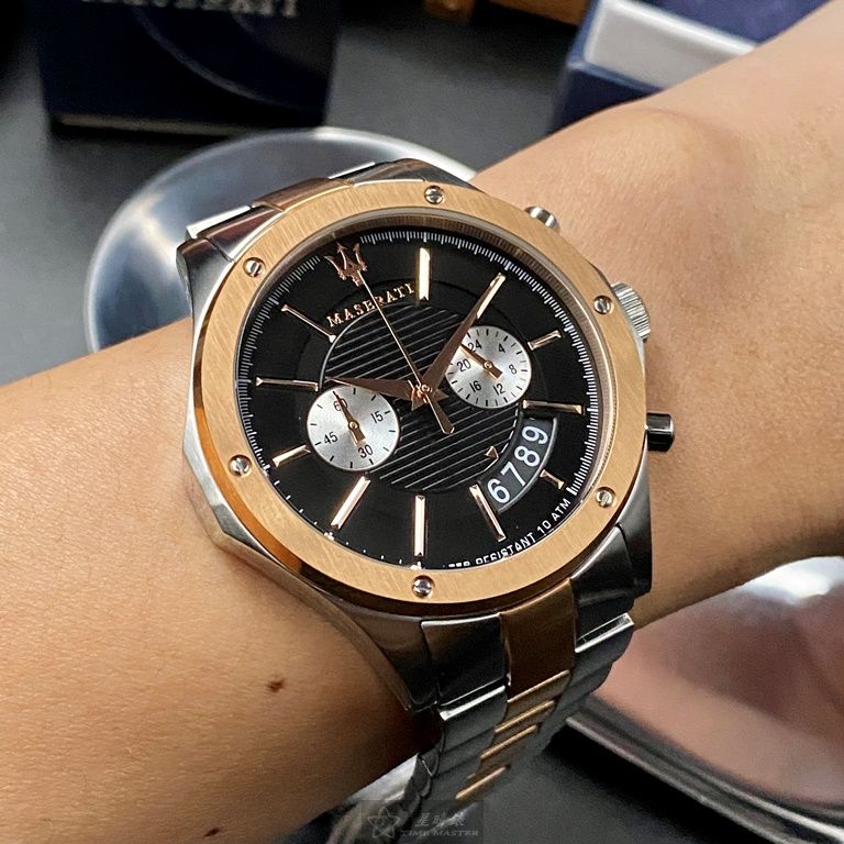 MASERATI手錶,編號R8873627004,46mm玫瑰金錶殼,金銀相間錶帶款
