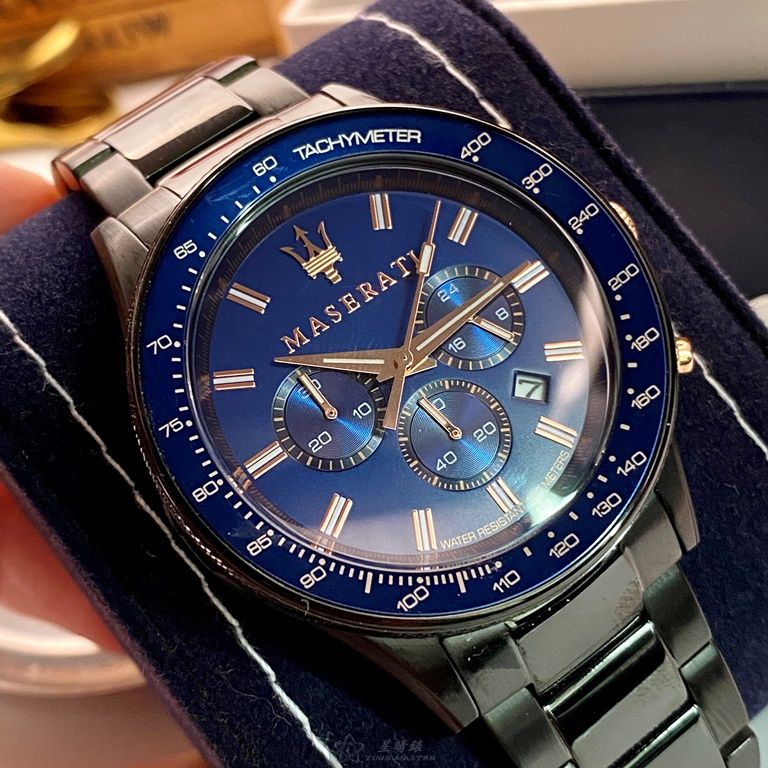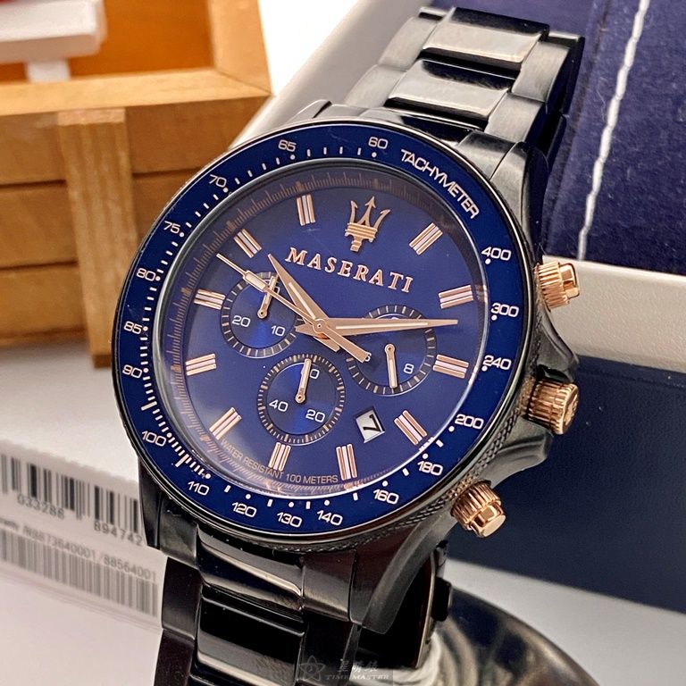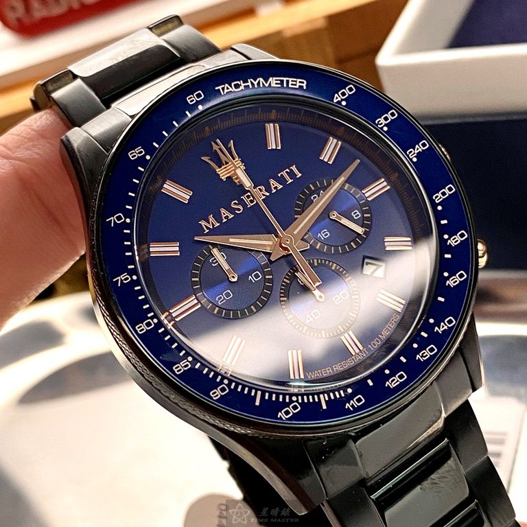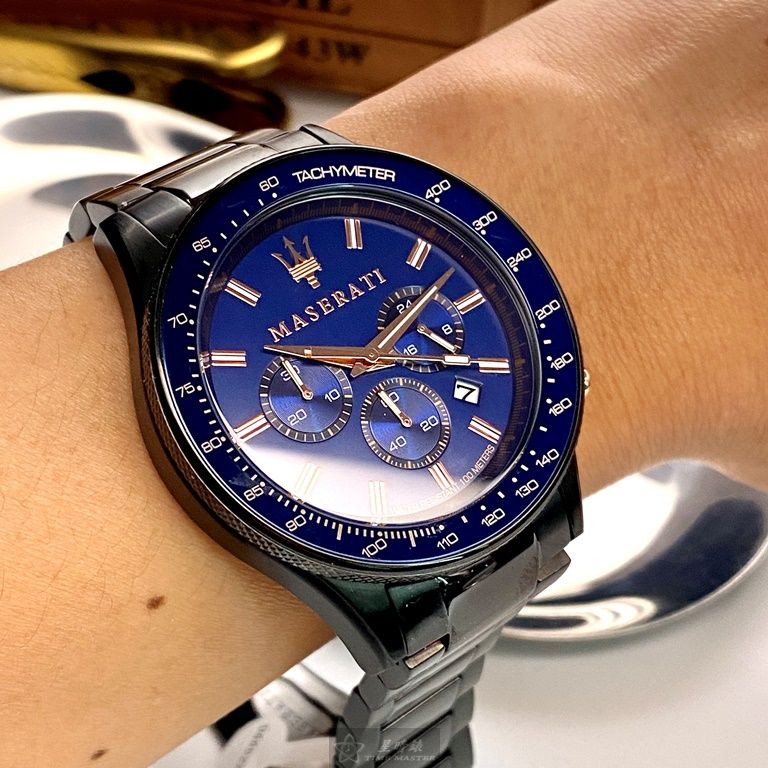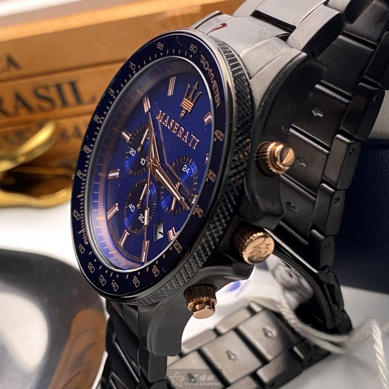 MASERATI手錶,編號R8873640001,44mm黑錶殼,深黑色錶帶款